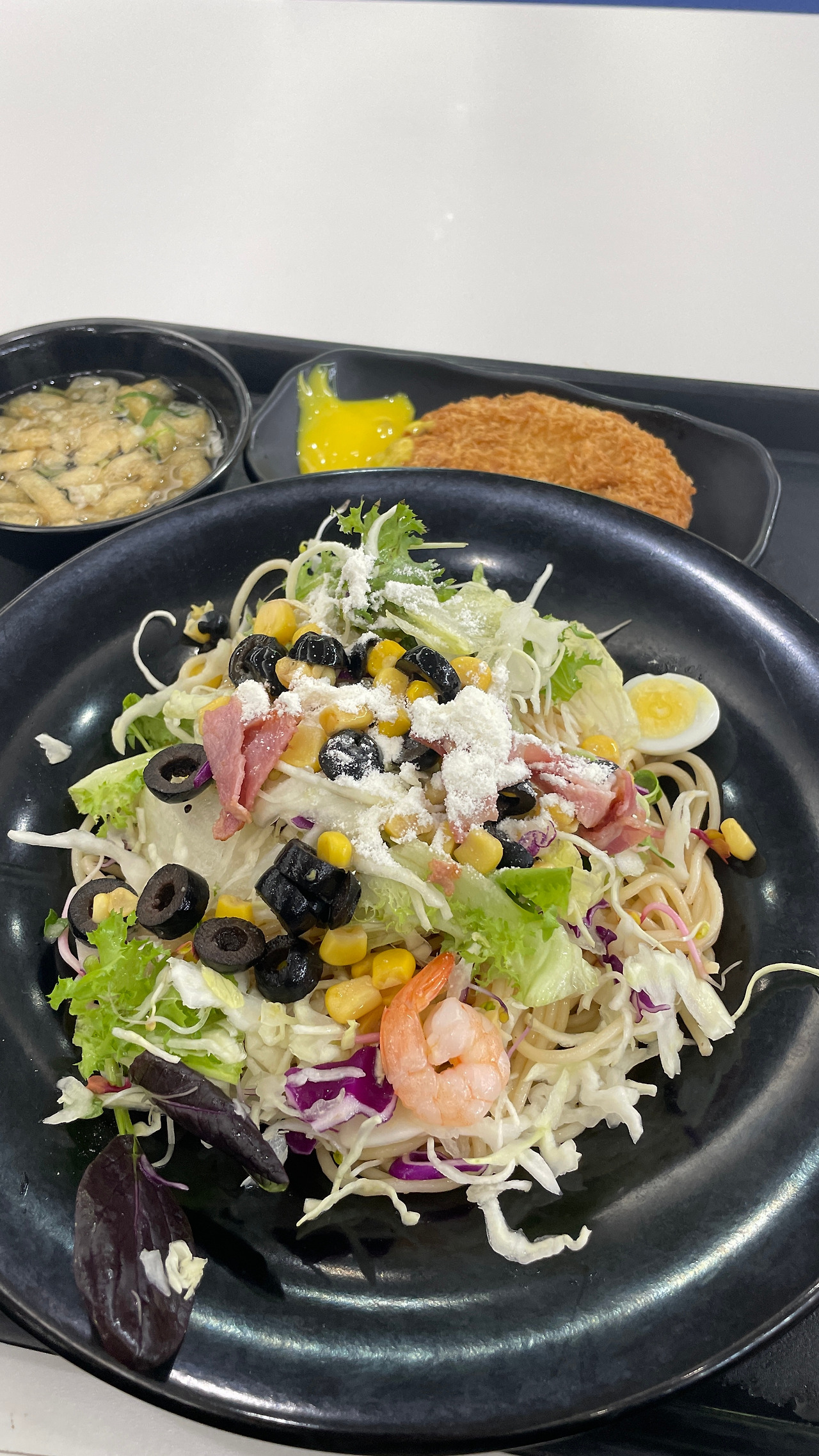 2. 그래도 점심을 먹어야하지 않을까 해서 약간 늦게 점심을 먹으러 갔다. 그래도 먹고 과제하고, 논문도 써서 내 가치를 증명해야지 하고 씩씩하게 밥 먹으러 갔다. 학식에 내가 좋아하는 샐러드 우동과 비슷한 샐러드 파스타가 나왔다. 이건 못 참지라는 마인드로 바로 먹었다. 역시 학식답게 20% 부족한 맛이지만 그래도 맛있게 먹었다.