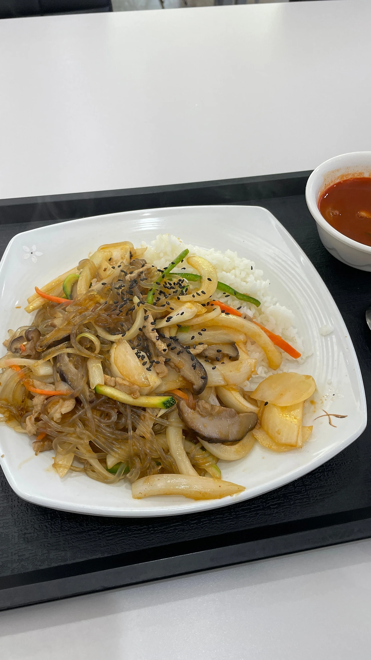 3. 그래도 저녁은 먹어야하니 학교에 있는 중식 푸드코트에 갔다. 푸드코트에서는 월요일부터 금요일까지 매일 오늘의 메뉴를 정해서 파는데 월요일은 중식잡채밥이었다. 나는 잡채밥, 마파두부 덮밥을 사랑하는 사람이기 때문에 잡채밥을 기대하면서 먹었다. 일단 냄새가 좋았다.
