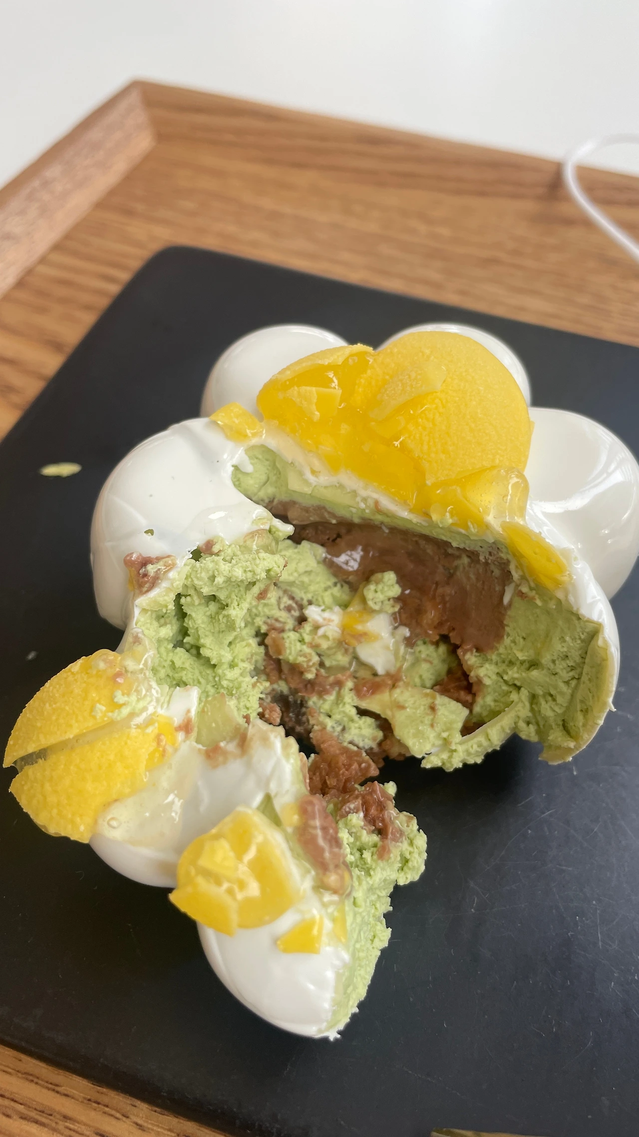 3. 미용실예약 보다 일찍 도착해서 근처에 있는 카페로 갔다. 디저트가 굉장히 고급스런 곳이다. 실제로도 사장님이 디저트를 오래 공부하셔서 파인다이닝같은 디저트를 파신다. 스타벅스나 할리스처럼 기존의 프랜차이즈 매장에서 빵과 케이크보단 타르트나 스몰 케이크를 판다. 결정적인 차이점은 맛의 레이어가 여러 층이기 때문에 먹어보면 고급진 것을 단번에 알 수 있다. 오늘 먹었던 것은 안에는 녹차로 채우고 유자향이 가득한 꽃같은 디저트였다. 먹고 나서 미용실로 천천히 걸었다. 낮의 여유가 느껴졌다. 미용실은 친구한테 추천받은 미용실에 추천받은디자이너에게 받았다. 가격도 좋은데 기존 미용실보다 더 잘 자른 것 같다.