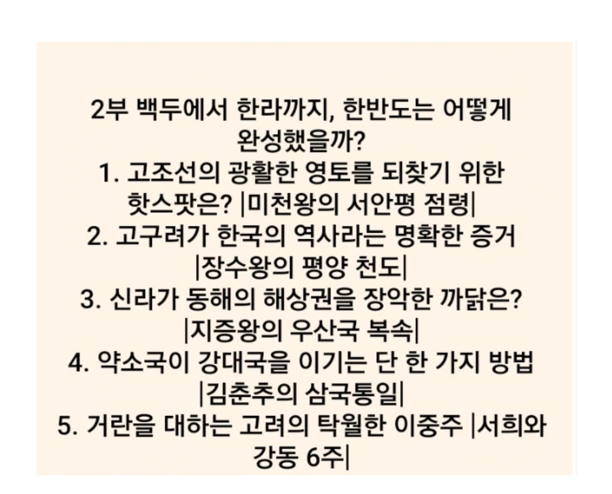 중국이 고구려사를 자국 역사에 포함하려는 속셈이나, 미국이 한반도 평화에 적극적인 이유 등, 현재 우리가 직면하고 있는 문제들과 연결되는 역사적 배경을 이야기하며 생각할 거리를 주고 있어요.