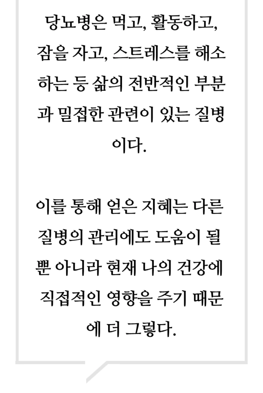 당뇨병은 다양한 얼굴을 하고 삶에 다가옵니다. 하지만 조금만 더 자신의 몸에 귀 기울이고, 작은 변화에도 관심을 가진다면, 당뇨병의 그림자가 드리우기 전에 충분히 알아차릴 수 있어요.