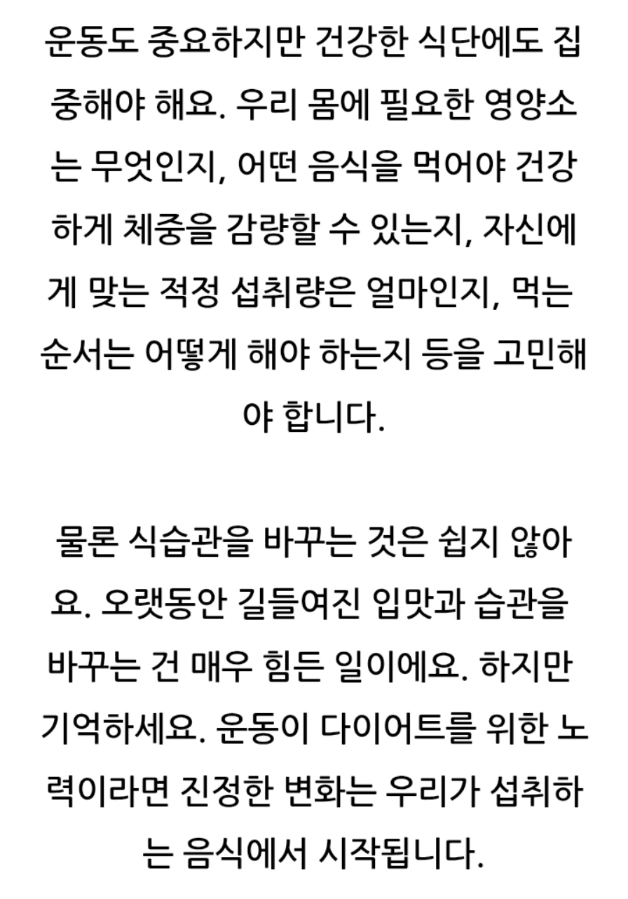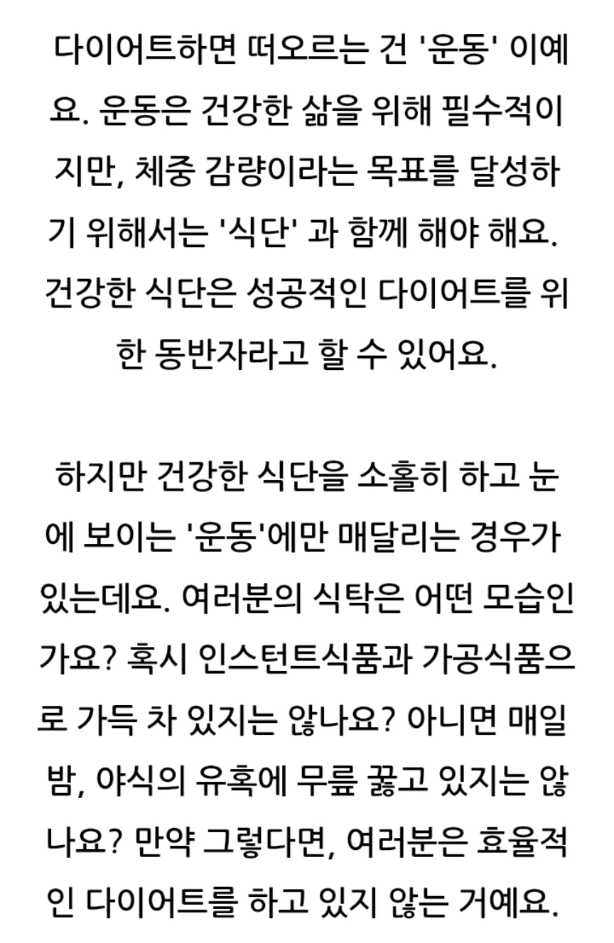 다이어트 성공의 핵심은 지속 가능성에 있어요. 단기간에 드라마틱한 효과를 보기 위해 극단적인 식단을 선택하기보다는, 천천히 꾸준히 실천할 수 있는 건강한 식습관을 만드는 것이 중요하다고 생각해요. 좋아하는 음식을 무조건 참기보다는, 건강한 방식으로 조리하거나 섭취량을 조절하는 지혜가 필요합니다.