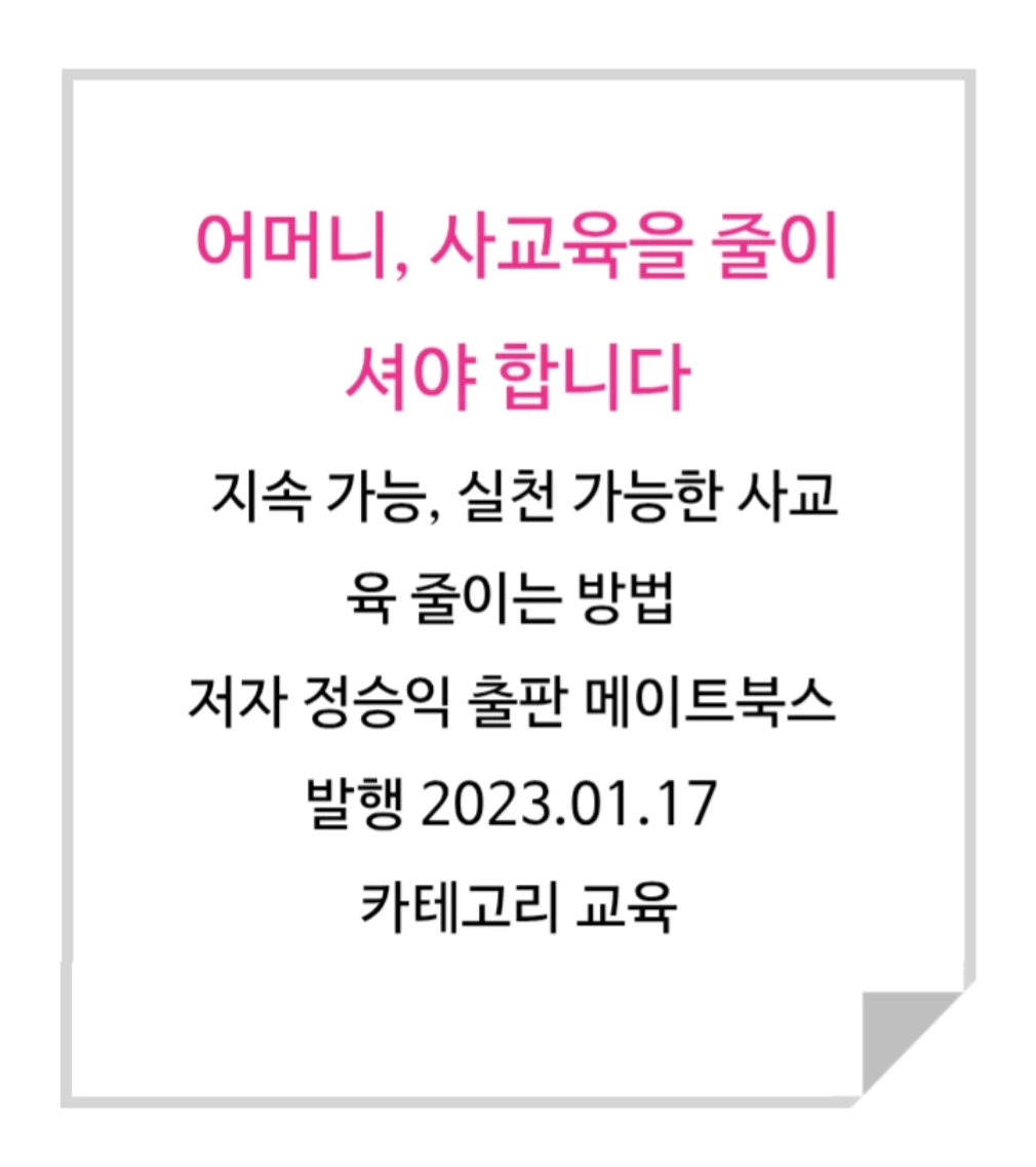 << 어머니, 사교육을 줄이셔야 합니다 >>