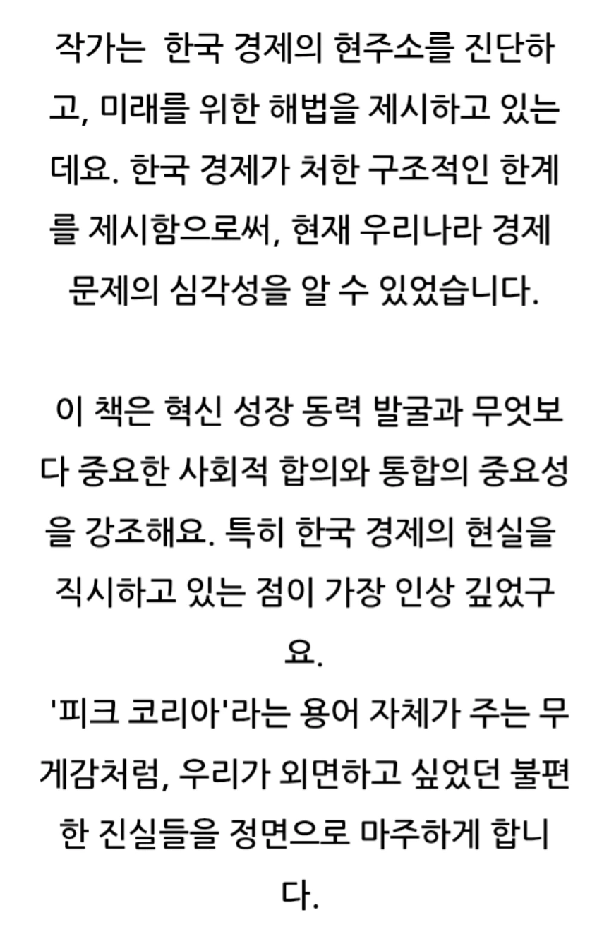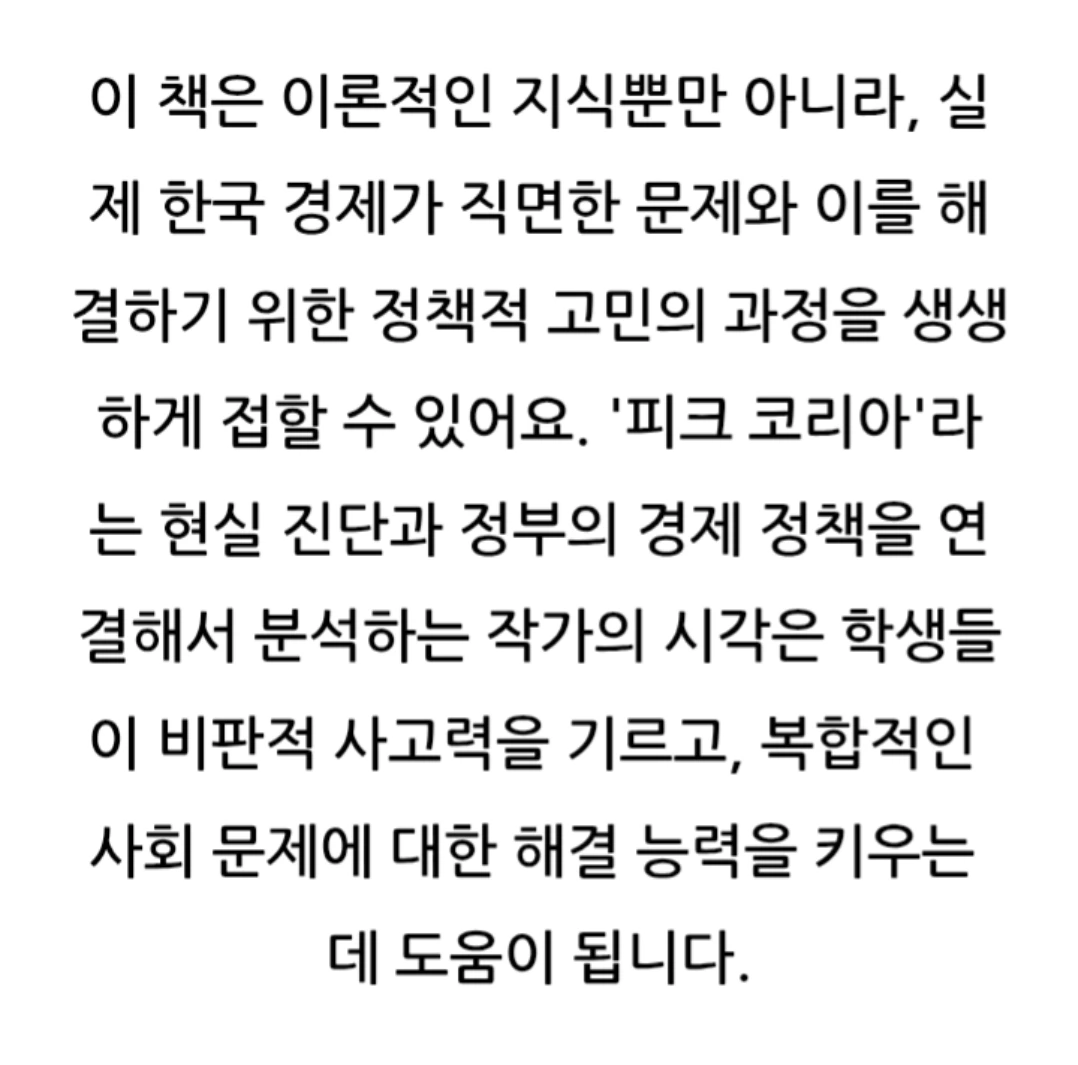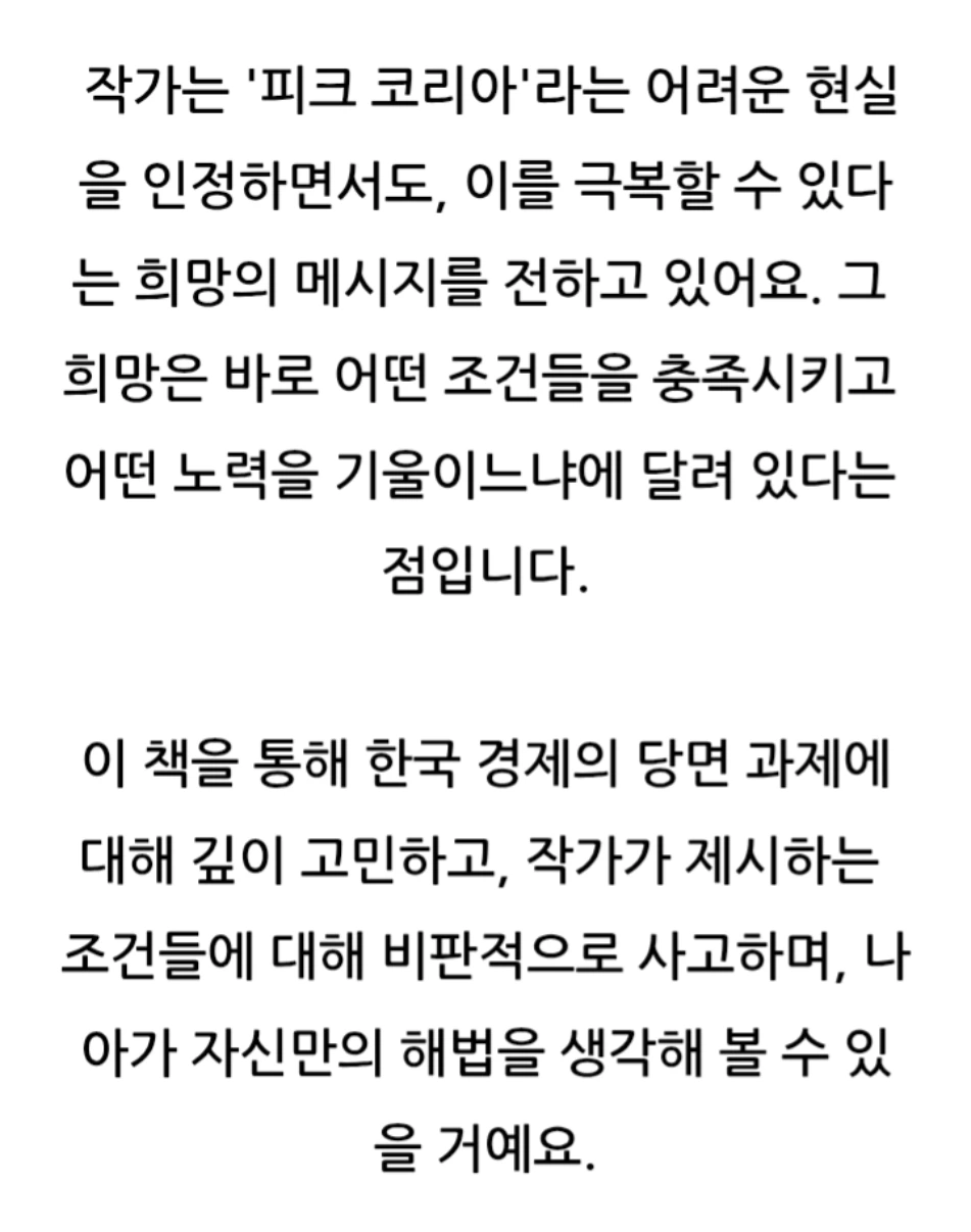피크 코리아 시대에 대한민국 경제가 나아가야 할 방향에 대한 깊이 있는 생각이 담겨 있습니다.