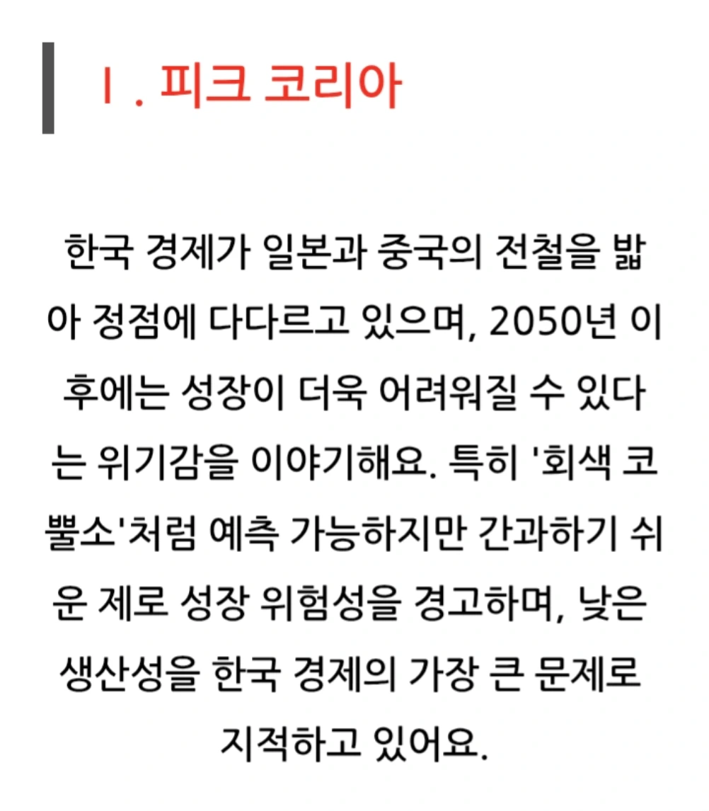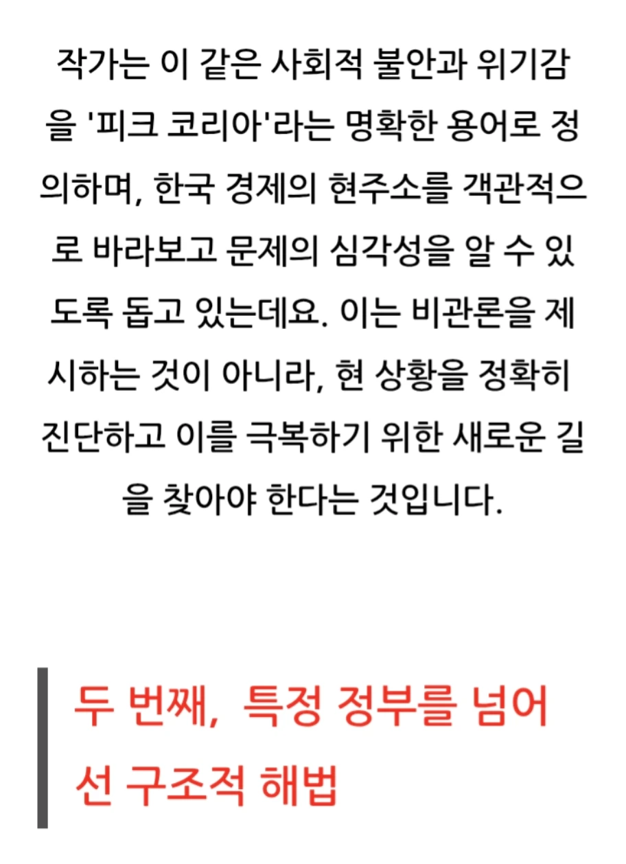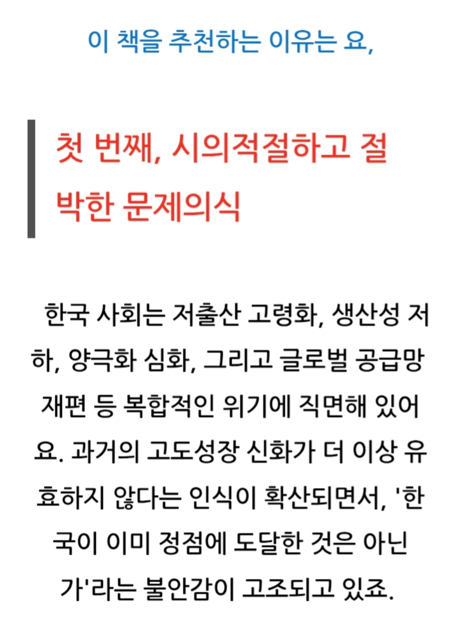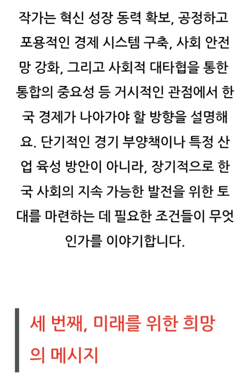 피크 코리아 시대에 대한민국 경제가 나아가야 할 방향에 대한 깊이 있는 생각이 담겨 있습니다.