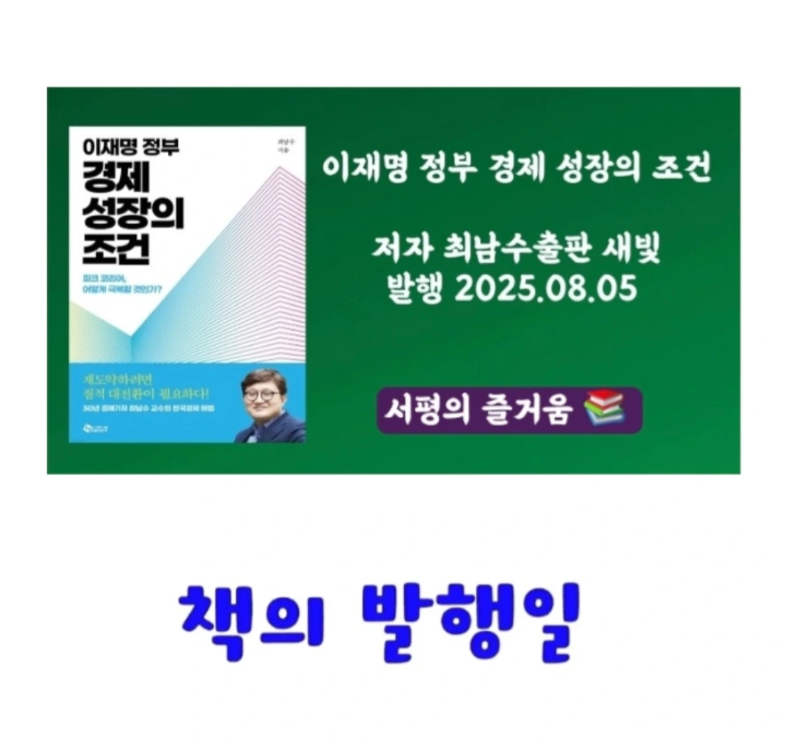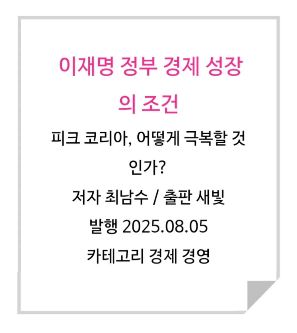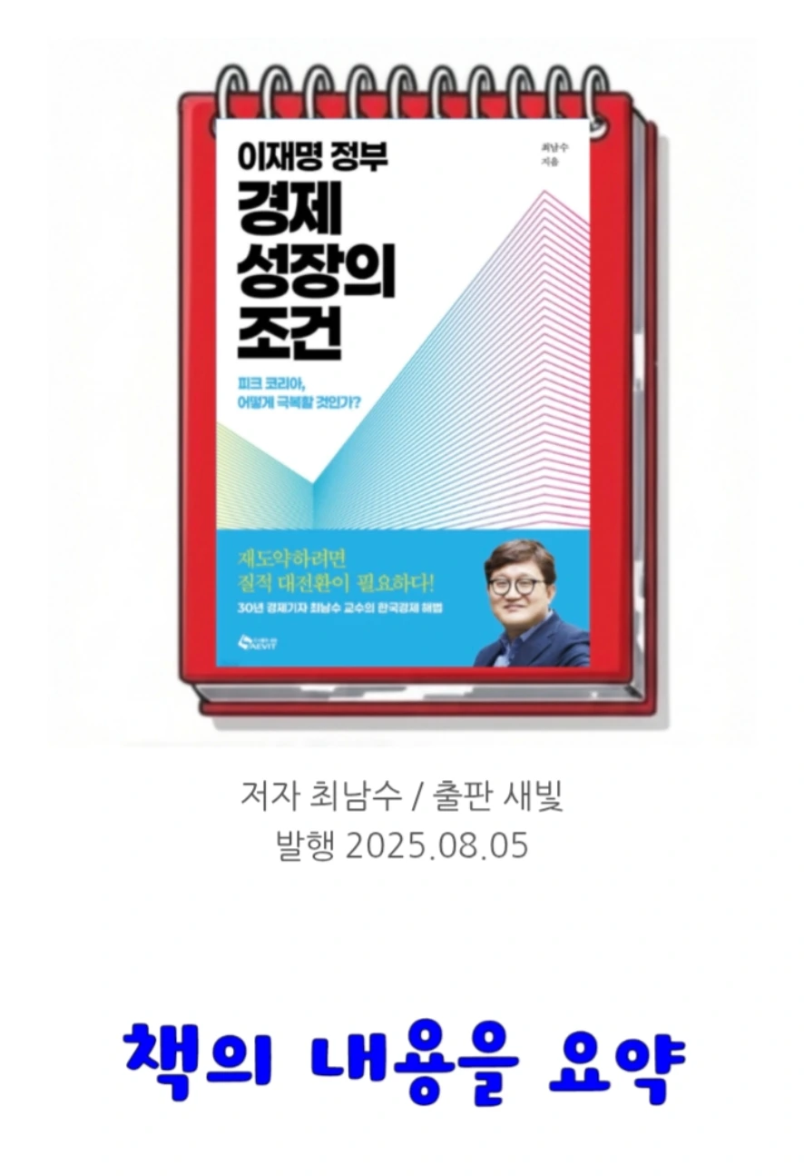 ➡️ 이 책은 2025년 8월 5일에 발행된 최남수 작가의 '이재명 정부 경제 성장의 조건 피크 코리아, 어떻게 극복할 것인가?'라는 도서로, 대한민국이 직면한 '피크 코리아' 현상을 진단하고 있어요.
