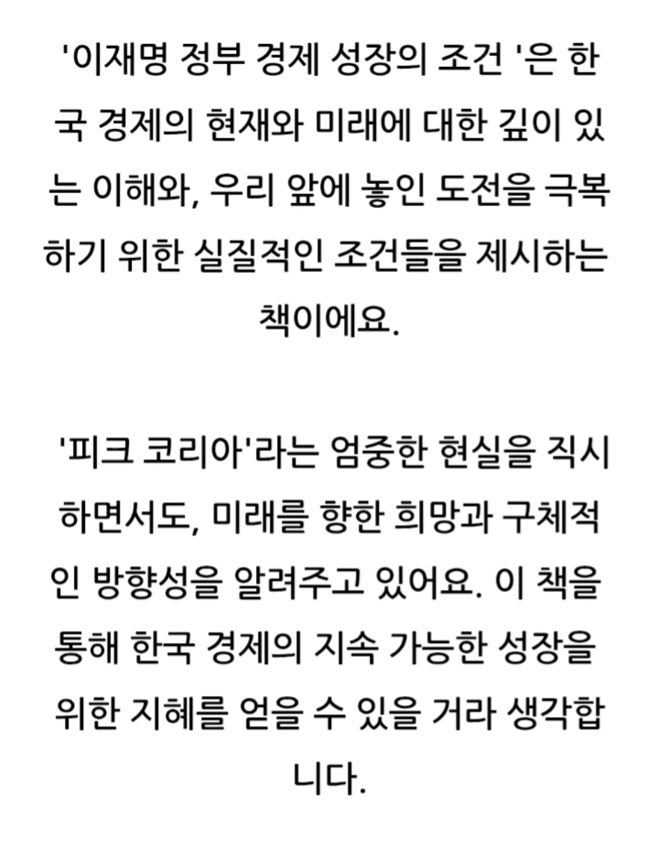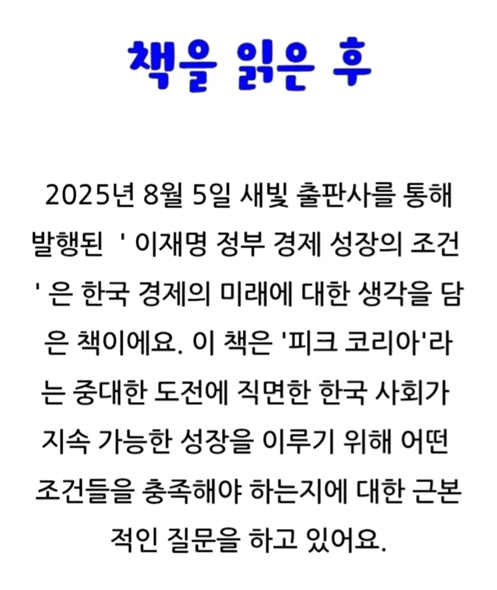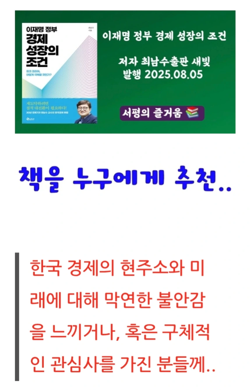 ➡️ 이 책은 2025년 8월 5일에 발행된 최남수 작가의 '이재명 정부 경제 성장의 조건 피크 코리아, 어떻게 극복할 것인가?'라는 도서로, 대한민국이 직면한 '피크 코리아' 현상을 진단하고 있어요.