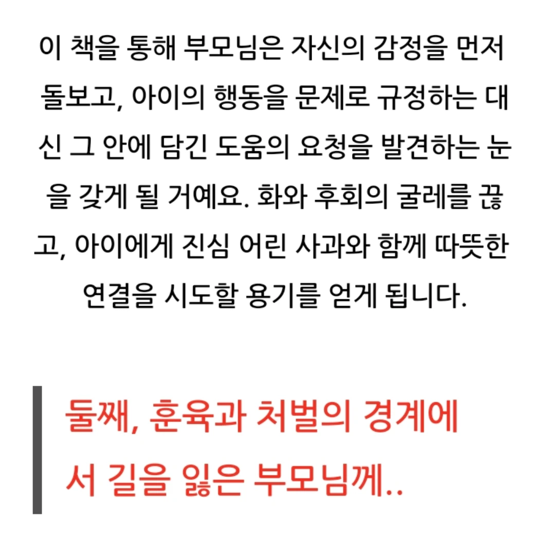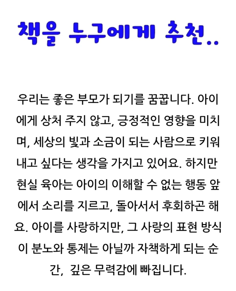 아이와의 힘겨루기를 끝내고 건강한 관계를 맺고 싶은 부모들에게 실질적인 도움을 줍니다.