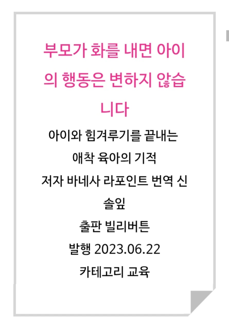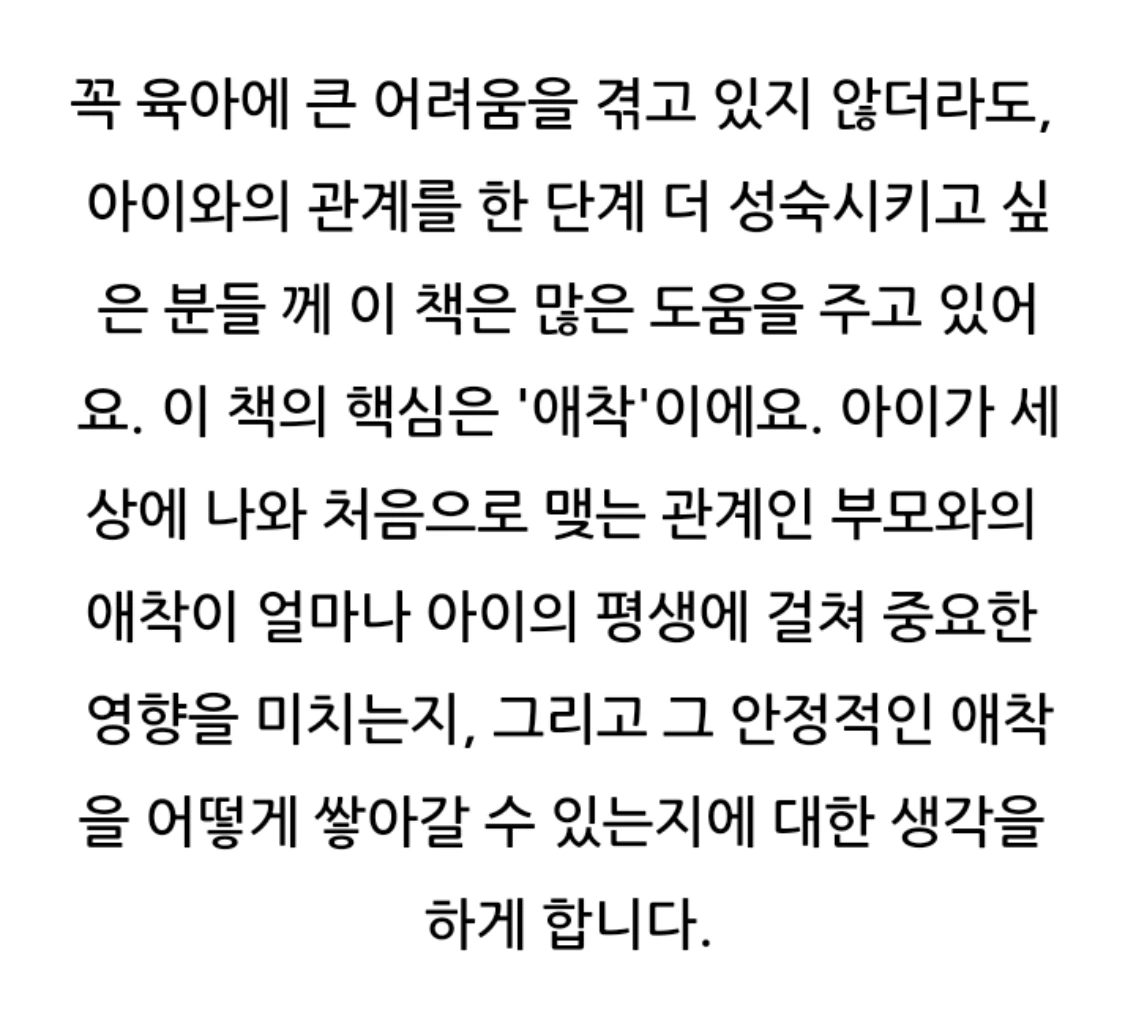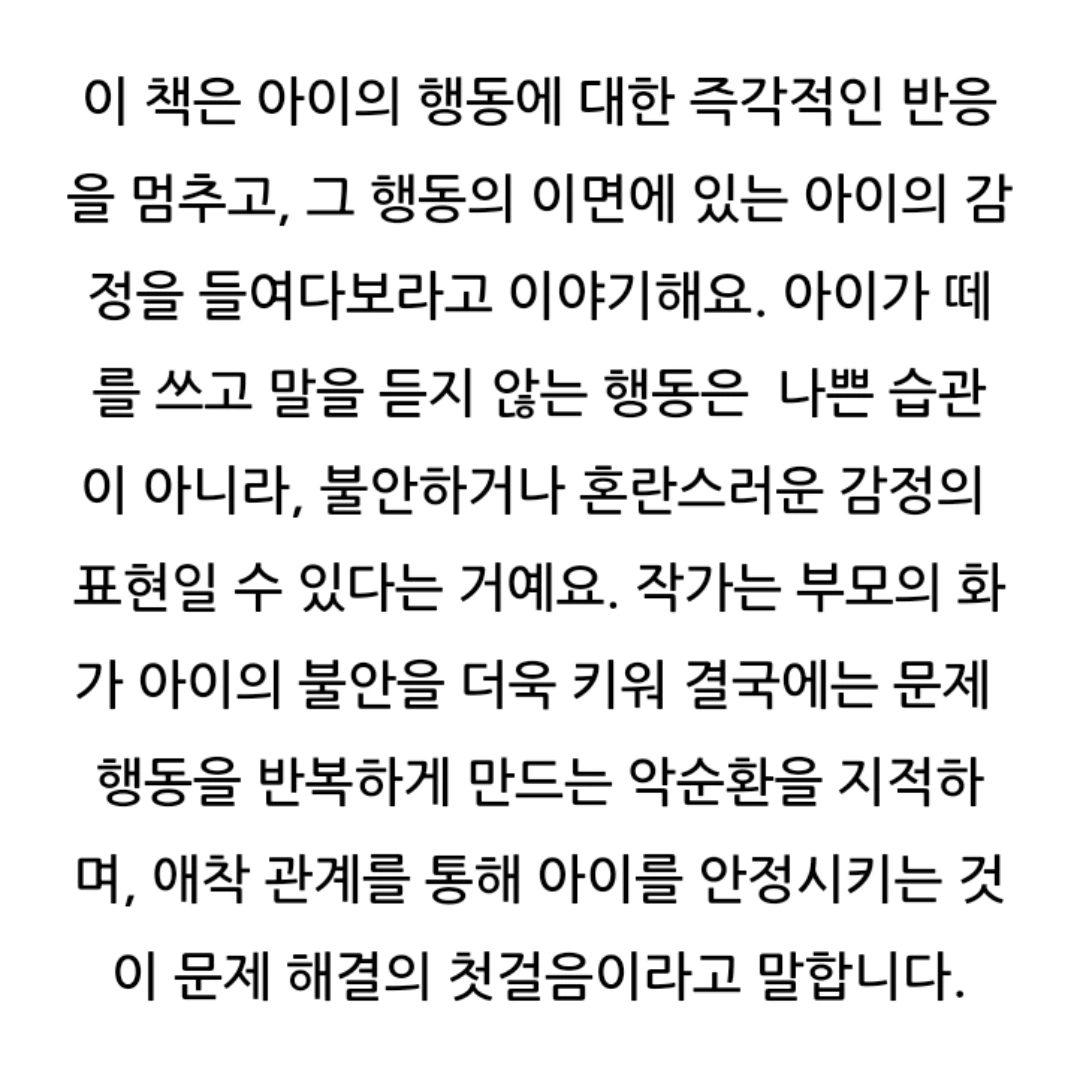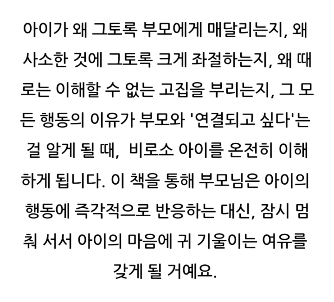 ➡️ 아이의 불안정한 행동을 훈육 대상으로 보지 않고, 불안정한 애착에서 비롯된 신호로 이해해야 한다고 이야기하는 책이에요.