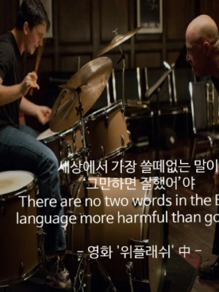 드러머를 소재로 만든 영화의 제목은 2014년 작 '위 플래시'다. whiplash의 뜻은 '채찍질'이다. 시나리오 작가 겸 감독인 데이미언 셔젤은 이 영화를 제작할 당시 29살이었다고 한다.