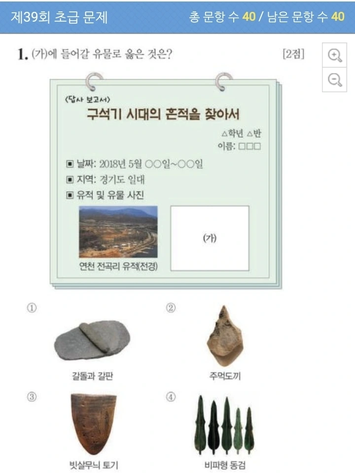 초급 1번. 한국사 기출문제, 구석기 시대의 흔적