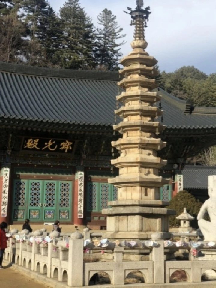 월정사는 강원도 평창에 있는 절이다. 팔각으로 다듬은 돌을 아홉 개로 쌓아 올린 탑이다. 고려 전기를 대표하는 석탑이다.