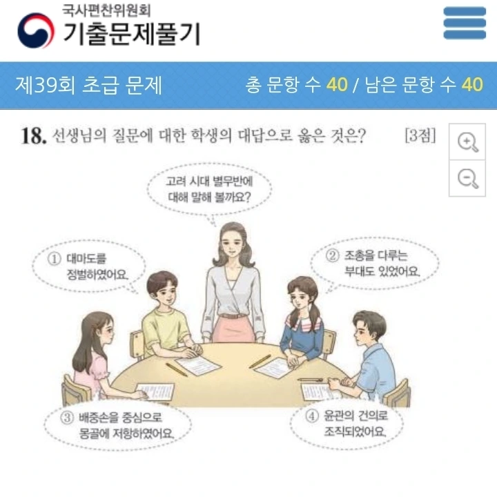 선생님의 질문에 대한 학생의 대답으로 옳은 것은?