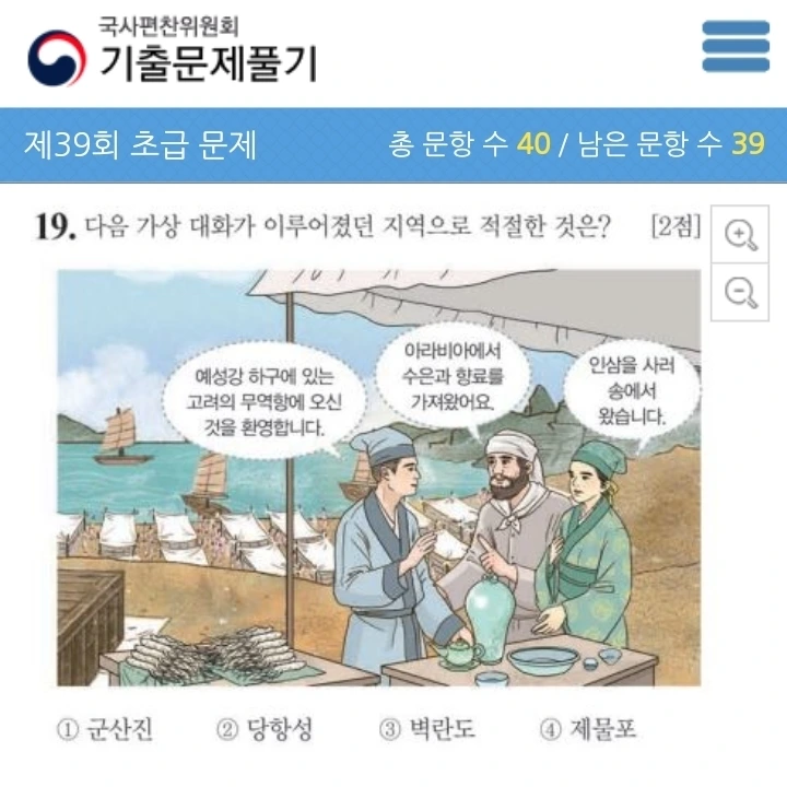 고려시대 국제 무역항인 벽란도에서 각국의 상인들이 서로 만나 나누었을 듯한