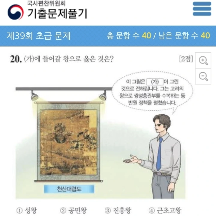 1. 성왕 2. 공민왕 3. 진흥왕 4. 근초고왕