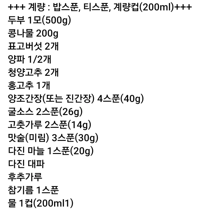 콩나물이 국민 식 재료란 것을 절대 동의할 수 없는 두부는 500g짜리 큰 걸로 1모를 준비해주세요.