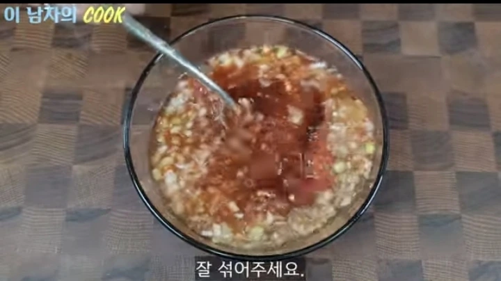 매운맛보다는 약간의 칼칼함을 더해 주기 위해 고추 가루는 2스푼 넣어주시고요. 새해 다짐이었던 인간이 되기 위해 다진 마늘도 1스푼 넣어주세요.