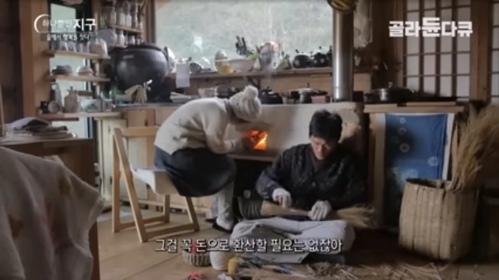 부부가 자연과 함께 내 인생을 내 뜻대로 살고 싶은 마음이 소로우의 철학과 일치 한다. 항상 뭔가에 쫓기는 삶은 도시의 물질적인 혜택에 대해 치러야 할 대가가 아니던가.. 밥 지을 화덕의 불을 만들기 위해 2시간이 걸린다는데 이들은 그 여유로움을 즐긴다고 한다. 부부의 삶은 돈과 소비와 거리가 멀다. 분명 또래의 청년들과는 다른 삶을 살고 있다. 일반적인 삶이 항상 옳지는 않다. 그 기준 또한 애매모호하다. 어떤 이들은 젊은 부부를 돈도 없고 배경도 없으니 사회에서 적응하지 못한 사람들이라 생각할 수 있다. 하지만 자기 삶의 철학이 확고하지 않다면 부부처럼 살 수 없다.무슨 사연이 있어 시골 외진 곳에서 사는가 싶지만 부부는 도시의 경쟁이 싫고 원자력 사고로 인한 피해를 보며 자연 친화적인 삶을 결정했다고 한다.최소한의 검소한 생활로 자연과 함께 한다면 행복한 삶을 살 수 있다는 게 젊은 부부의 생각이다.