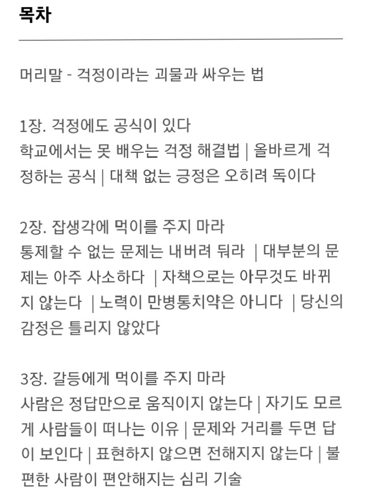 ' 걱정에게 먹이를 주지 마라 ' 제목의 문장 한마디가 벌써 마음에 콕 와닿습니다.