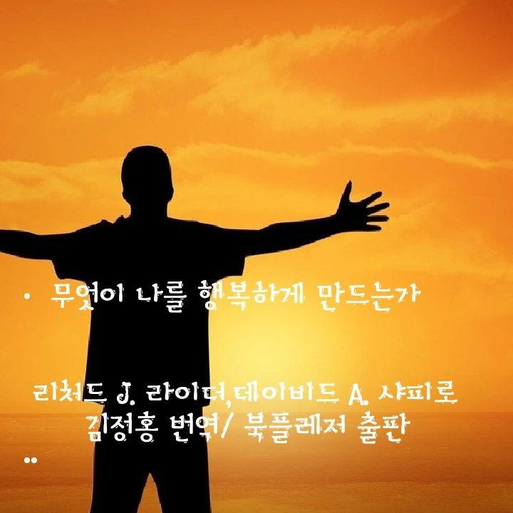 중년의 삶을 인생의 오후라고 합니다. 이 책은 우리에게 인생의 오후 시간은 그리 많이 남지 않았다는 말을 이야기합니다. 성공해야 행복한것이 아니라 행복해야 성공한다 라는 문장이 마음에 남는군요.