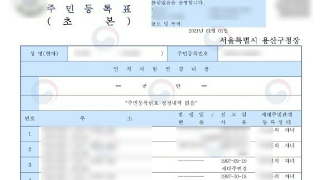 주민등록 초본을 보니 1980년대, 90년대 학창 시절을 보낸 주소지가 익숙한 숫자로 다가왔다. 2002년 결혼과 함께 세대가 분리되고 2021년 지금 사는 곳까지 그려온 삶의 흔적은 나무가 남긴 나이테와 같지 않은가.