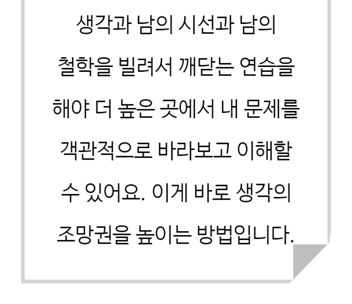 결국 타인의 시선이라는 건 존재하지 않아요. 타인의 시선을 의식하는 나만 존재할 뿐이죠.