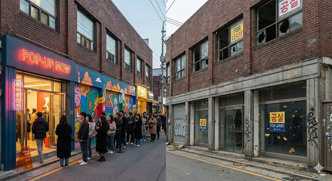하나는 내수 MZ세대의 '경험 소비' 열풍이다. 짧고 강렬한 체험, SNS 인증 가능한 공간, 한정판 굿즈에 대한 갈증. 이들이 성수동을 첫 번째 팝업 성지로 만들었다.