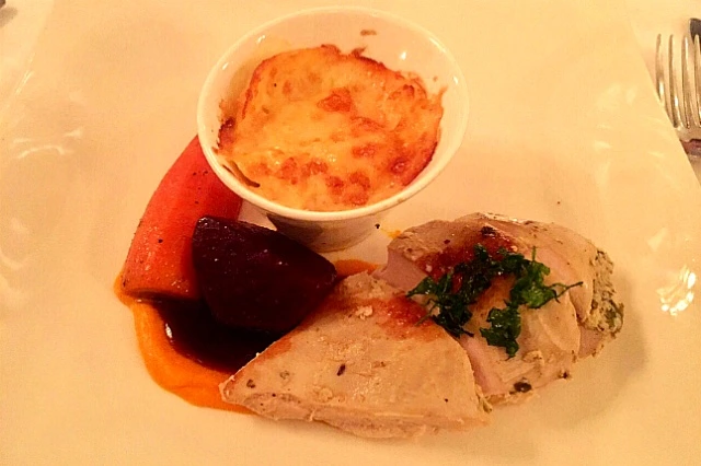 메인 음식으로는 치킨 스테이크와 감자 요리가 나왔다. 딱 기본에 충실한 맛이었다. 정직한 재료, 정직한 맛이 느껴졌다. 내 옆에 오스트레일리아 출신의 아주머니가 앉으셨는데, 음악에 대해 이것저것 이야기를 해 주시기도 했다. 메인 음식을 먹는 중에 목이 말라서 칵테일 하나를 주문했는데, 칵테일에 드라이아이스를 하나 넣어서 주셨다. 빨간 칵테일 위에 흰색 기체가 넘치고 있으니 예쁘기도 예뻤고, 맛도 있었다. 옆에 앉은 아주머니가 여기서 가장 오래된 메뉴라고 설명을 해주시기도 했다.