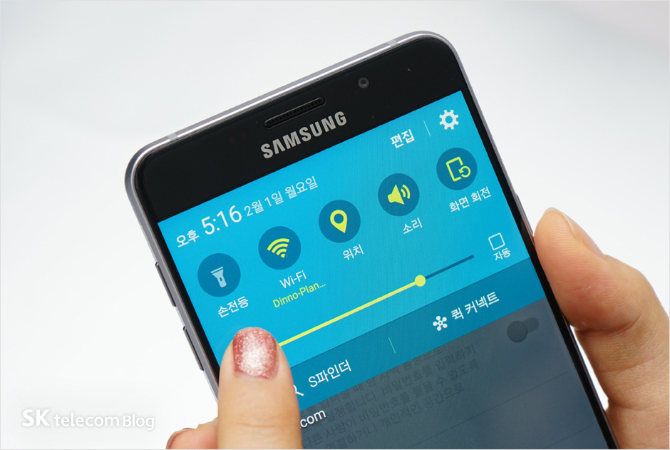 ‘간편 설정 - 편집 - 손전등 아이콘을