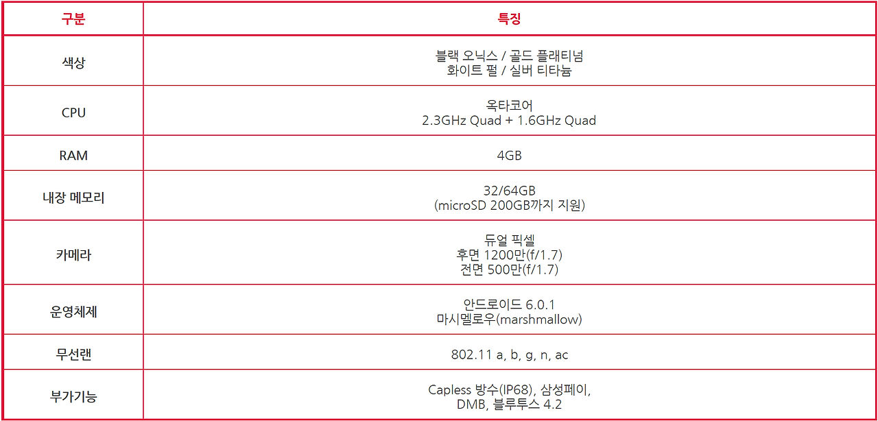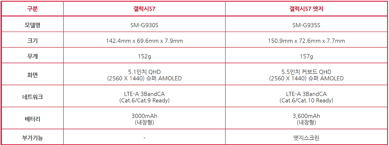 나. 갤럭시S7 & S7 엣지 스펙 차이점