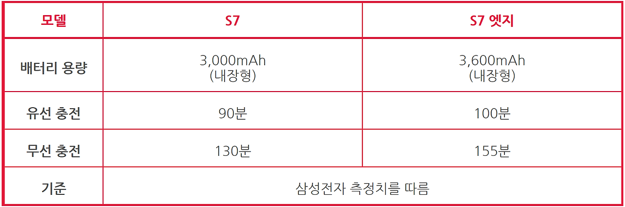나. 갤럭시S7 & S7 엣지 스펙 차이점