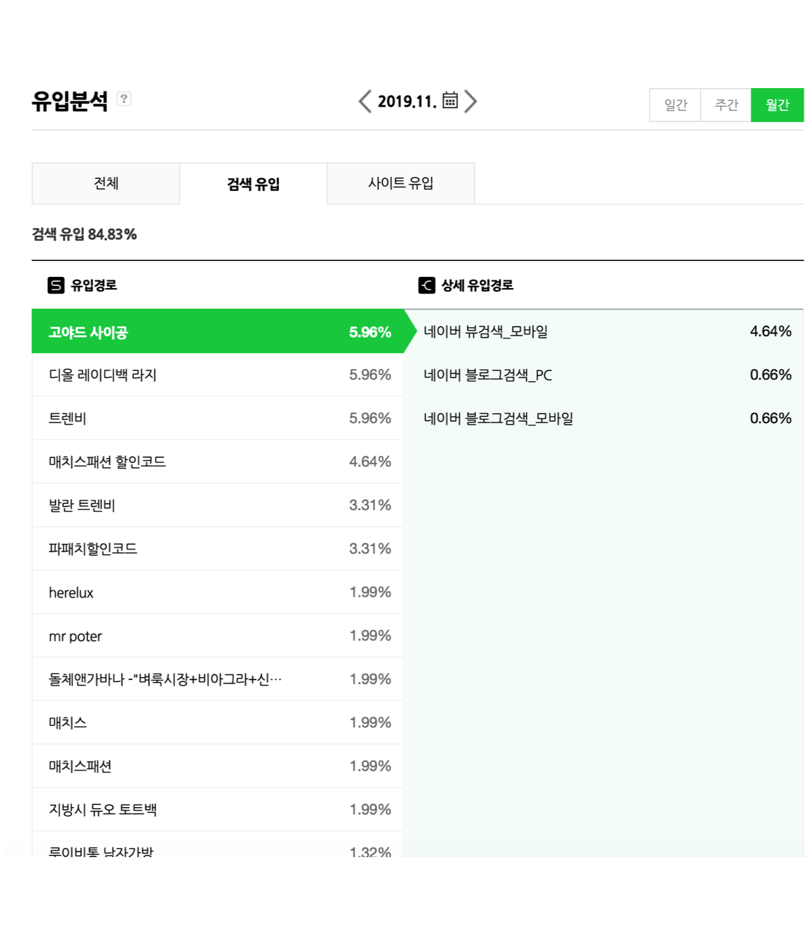 쉽게 설명드리면 '루이비통(브랜드 명) + 가방(카테고리 명)'을 검색한다는 것입니다.