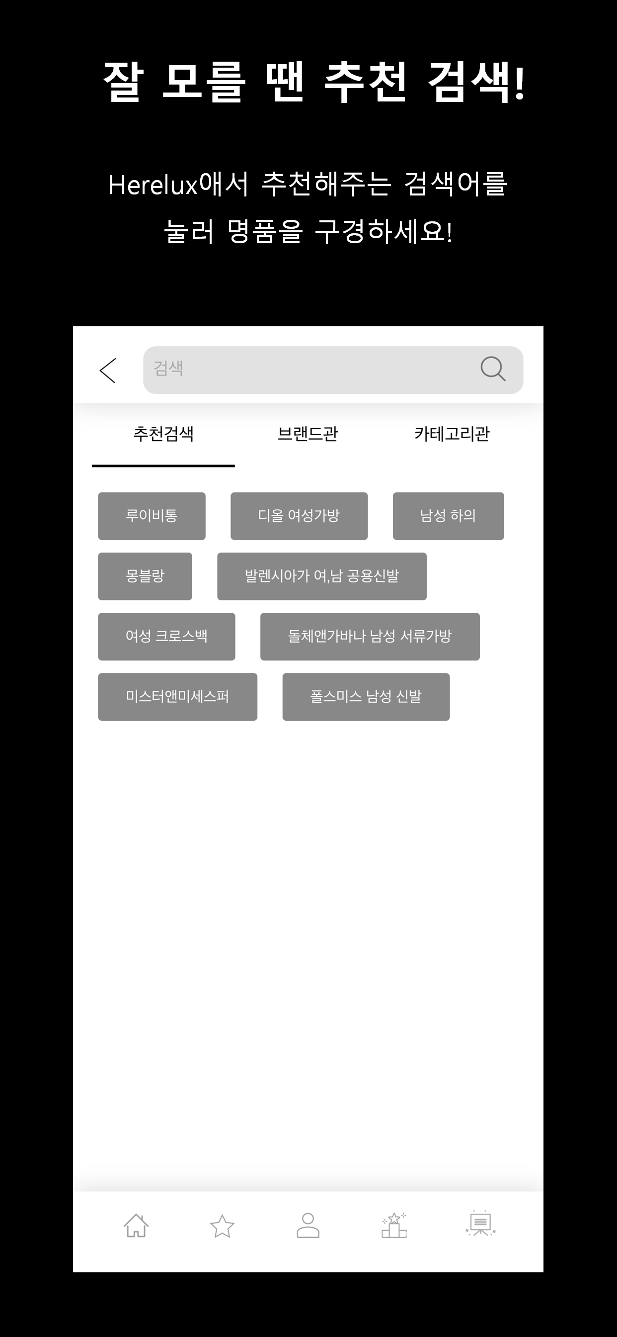 검색도 추천 검색어, 브랜드관, 카테고리관으로 구성되어 있어