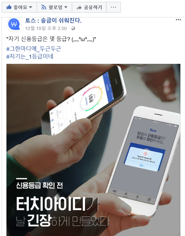 토스가 신용정보 보는 기능을 넣고 가끔 홍보할 때까지는