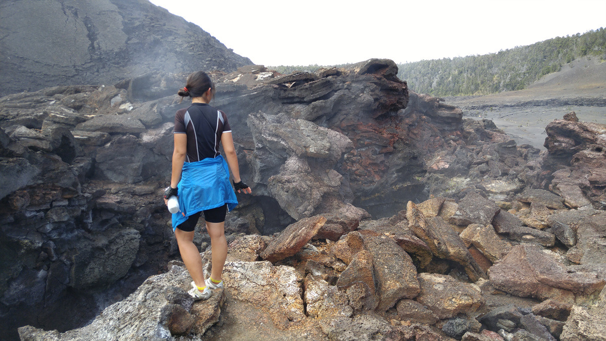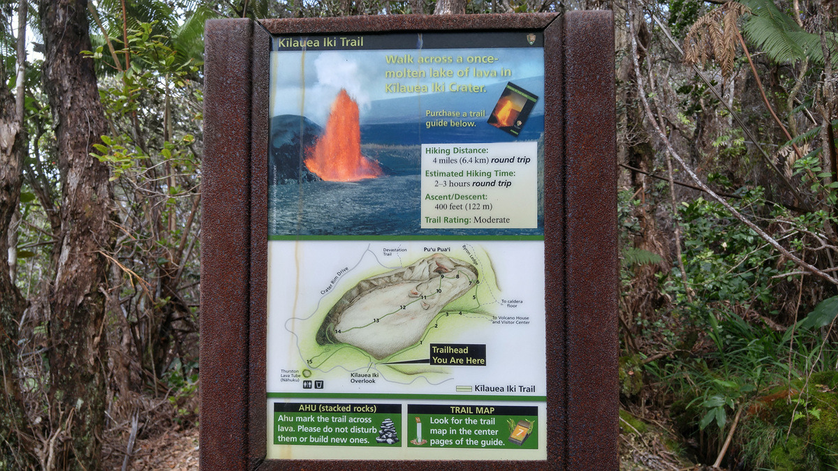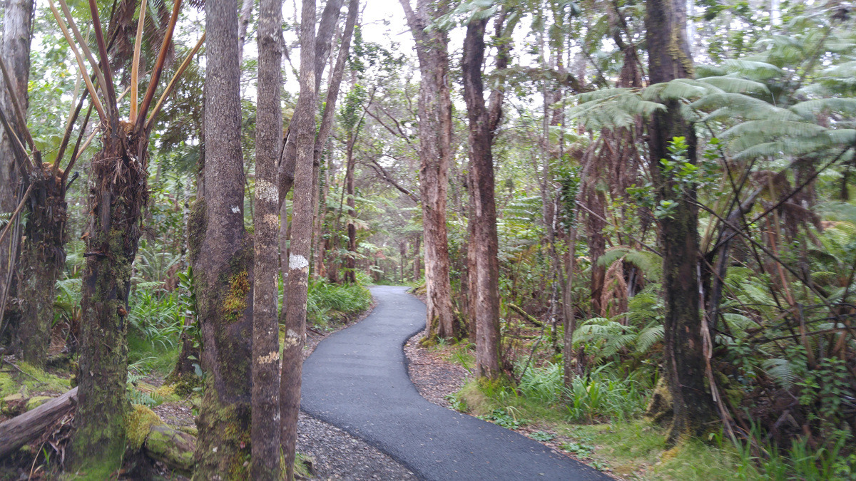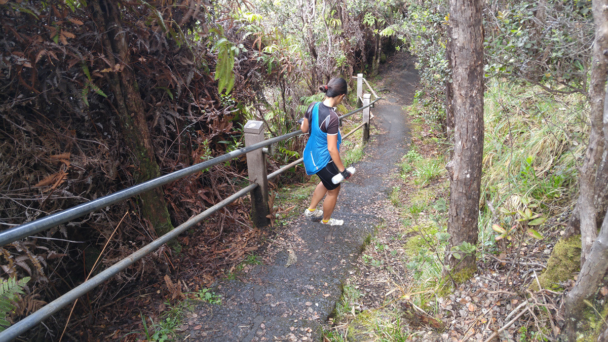 다시 크레이터 림 드라이브를 돌아나와서 킬라우에아 이키 트레일 입구를 찾아간다. 이키 트레일은 킬라우에아 분화구 바로 옆에 있는 이키 크레이터를 가로지를 수 있는 이 국립공원의 대표적인 트래킹 코스다. 입구 근처에 자전거를 묶어두고 트래킹을 한 바퀴 돌고 온다. 자전거를 놔두고 가는 건 조금 찜찜하긴 하지만 그렇다고 이 특이한 트래킹 코스를 가지 않을 수는 없다.