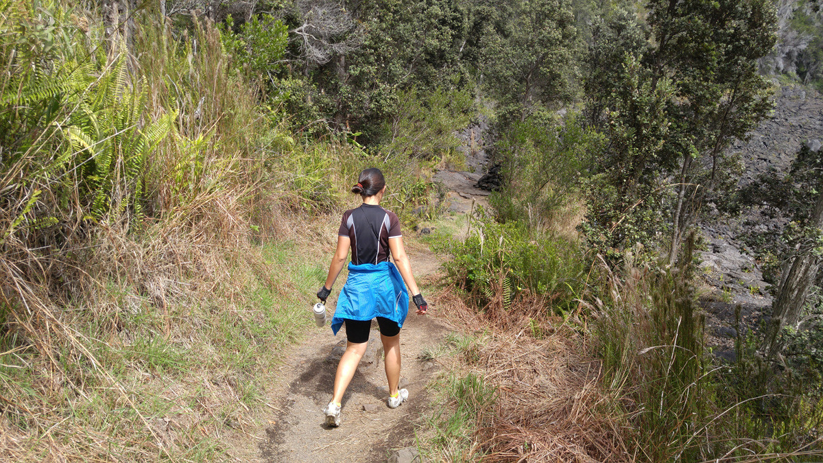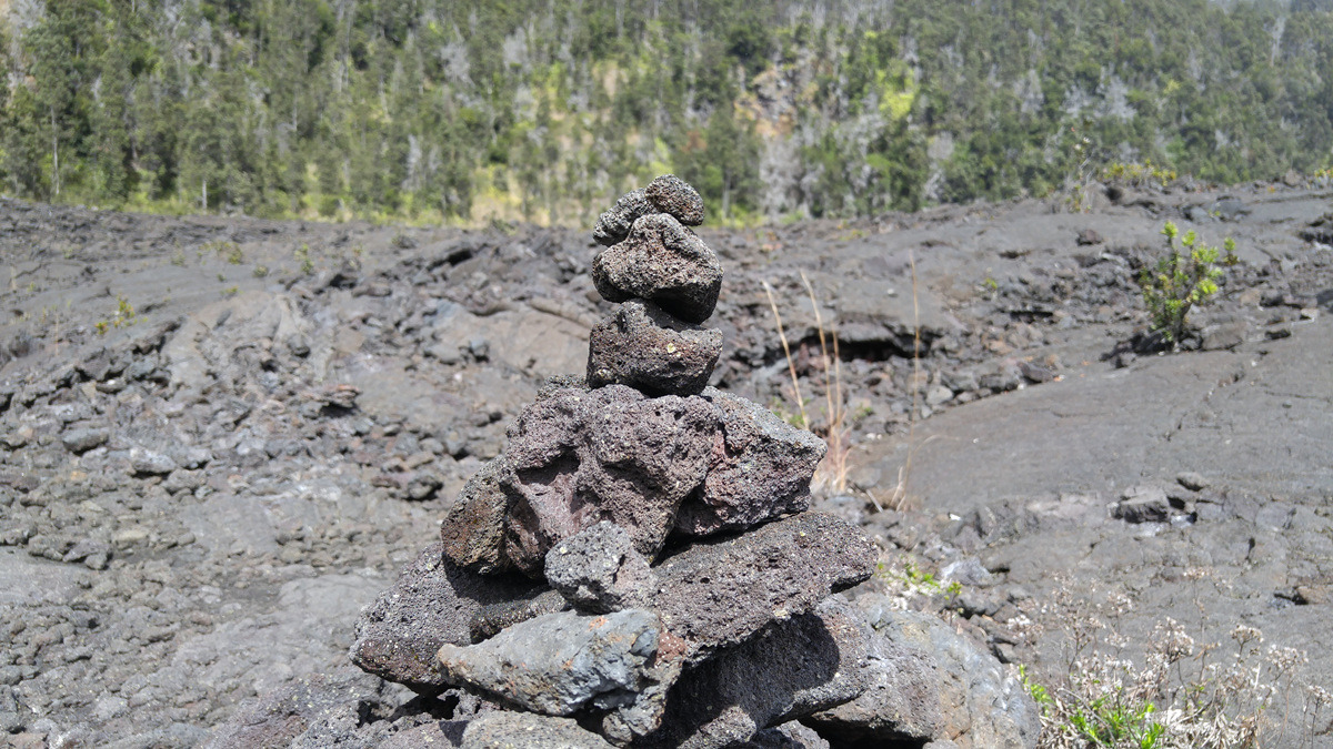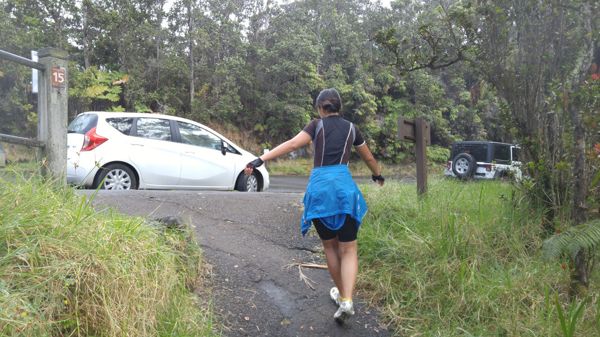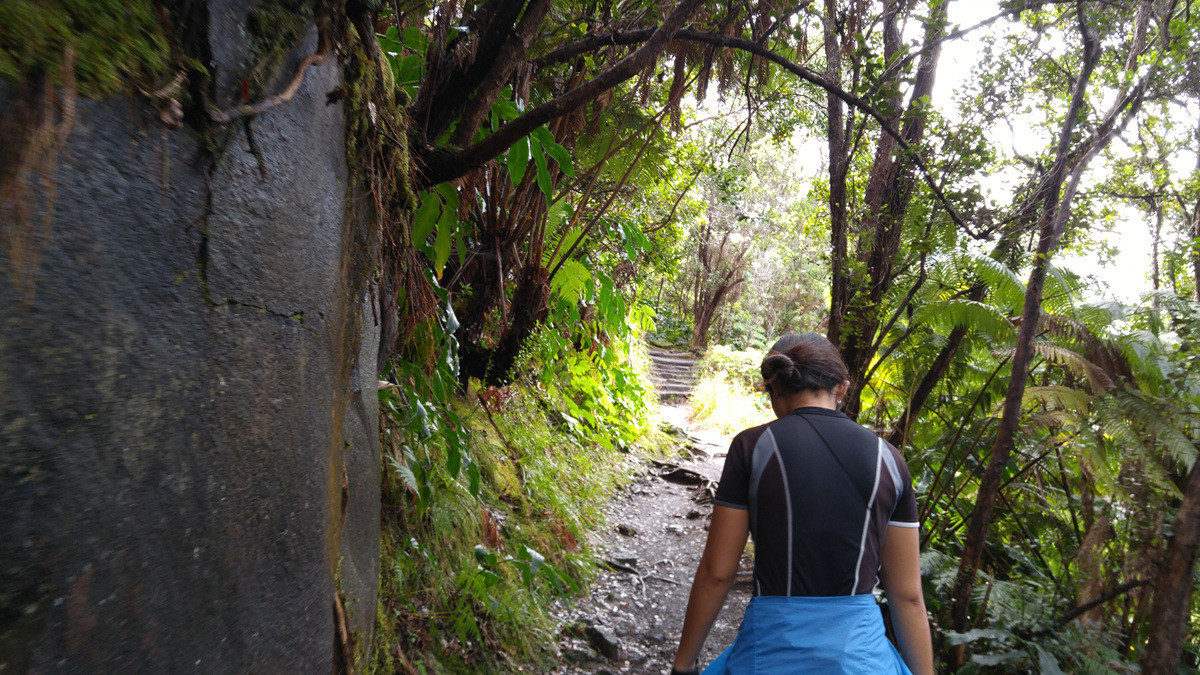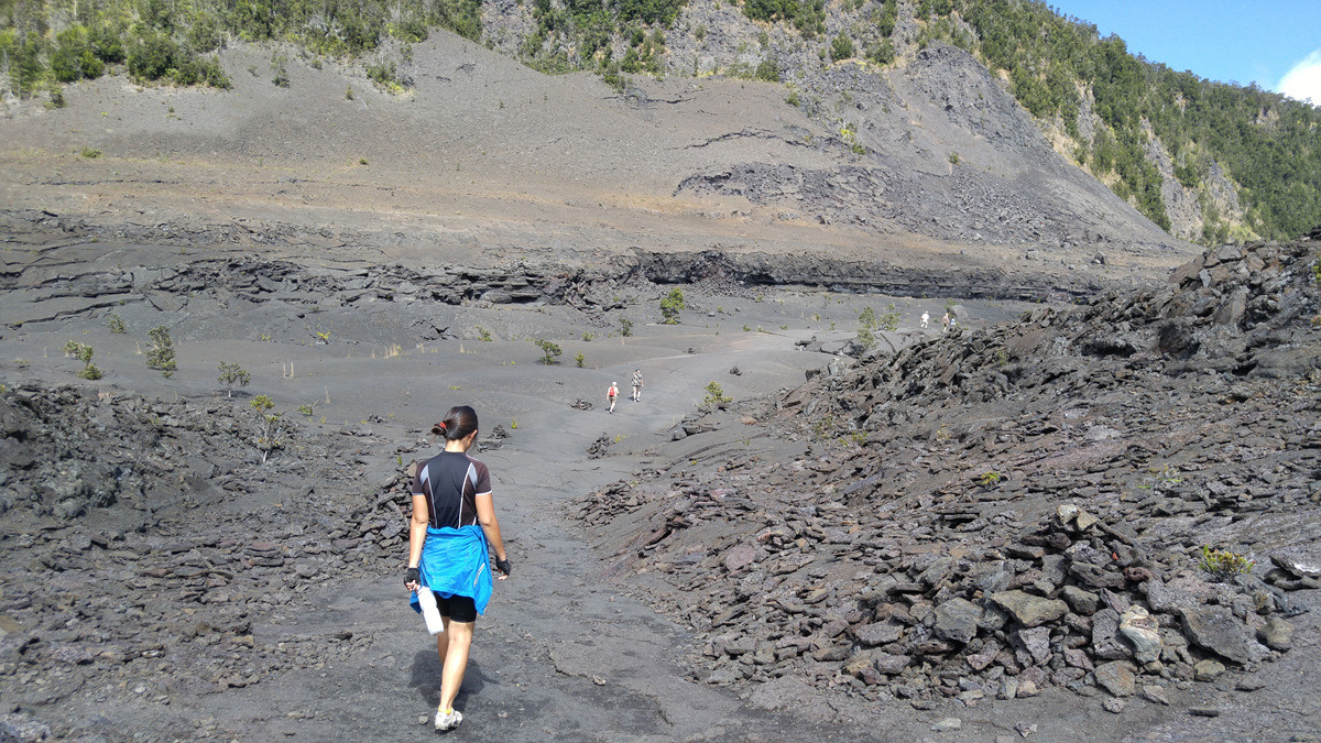 다시 크레이터 림 드라이브를 돌아나와서 킬라우에아 이키 트레일 입구를 찾아간다. 이키 트레일은 킬라우에아 분화구 바로 옆에 있는 이키 크레이터를 가로지를 수 있는 이 국립공원의 대표적인 트래킹 코스다. 입구 근처에 자전거를 묶어두고 트래킹을 한 바퀴 돌고 온다. 자전거를 놔두고 가는 건 조금 찜찜하긴 하지만 그렇다고 이 특이한 트래킹 코스를 가지 않을 수는 없다.