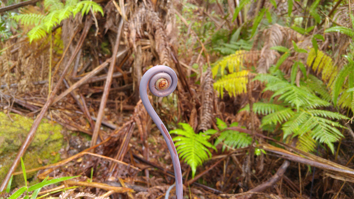 이키 트레일의 마지막 구간을 가려는데 다시 비가 쏟아진다. 이렇게 비가 많이 내리는 기후라 그런지 길가에는 고사리 같은 신기한 색의 식물들도 자란다.