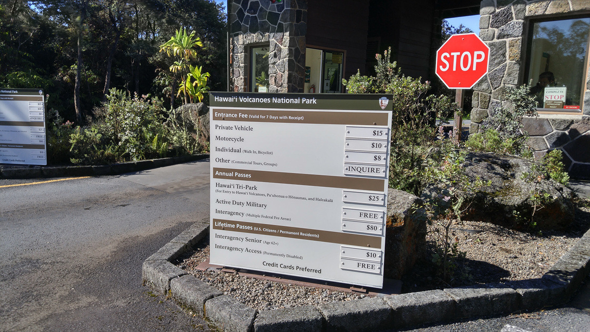 화산 국립공원 입구다. 일반 승용차는 한 차에 15달러, 자전거 이용자나 개인 여행자는 1인당 8 달러이다. 한 번 결제하고 영수증을 보관하면 일주일 동안 출입할 수 있다. 오전 10 시인 지금은 입장하는 사람이 많지 않다.
