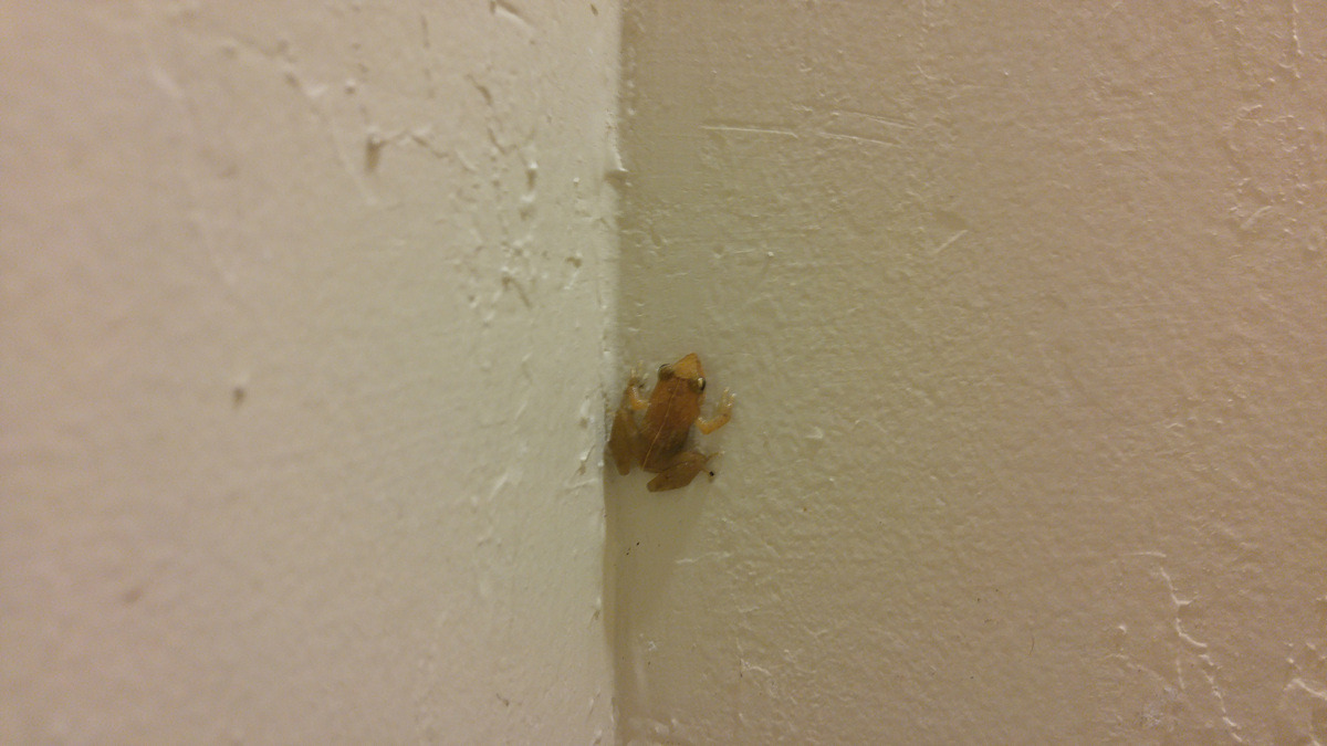 이 집은 화장실 겸 욕실이 실외에 있는데 화장실 불을 켜보니 개구리들이 벽에 붙어 있다. 모기나 날벌레를 잡아먹는 동물들은 좋아하니 쫓아내지 않고 가만히 둔다.