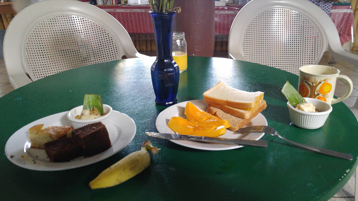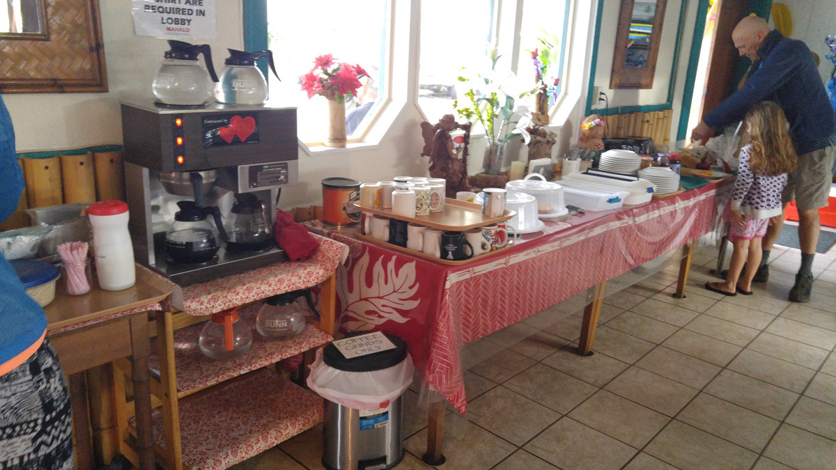 엄청 맛있거나 한 것은 아니지만 그래도 이 저렴한 숙소에서 아침식사까지 해결할 수 있으니 좋다. 자전거를 타기 위한 연료를 열심히 채워야한다. 지니님이 호텔 여주인과 이런저런 이야기를 하다가 힐로에서는 코코넛 아일랜드를 꼭 가보라는 이야기를 듣는다.