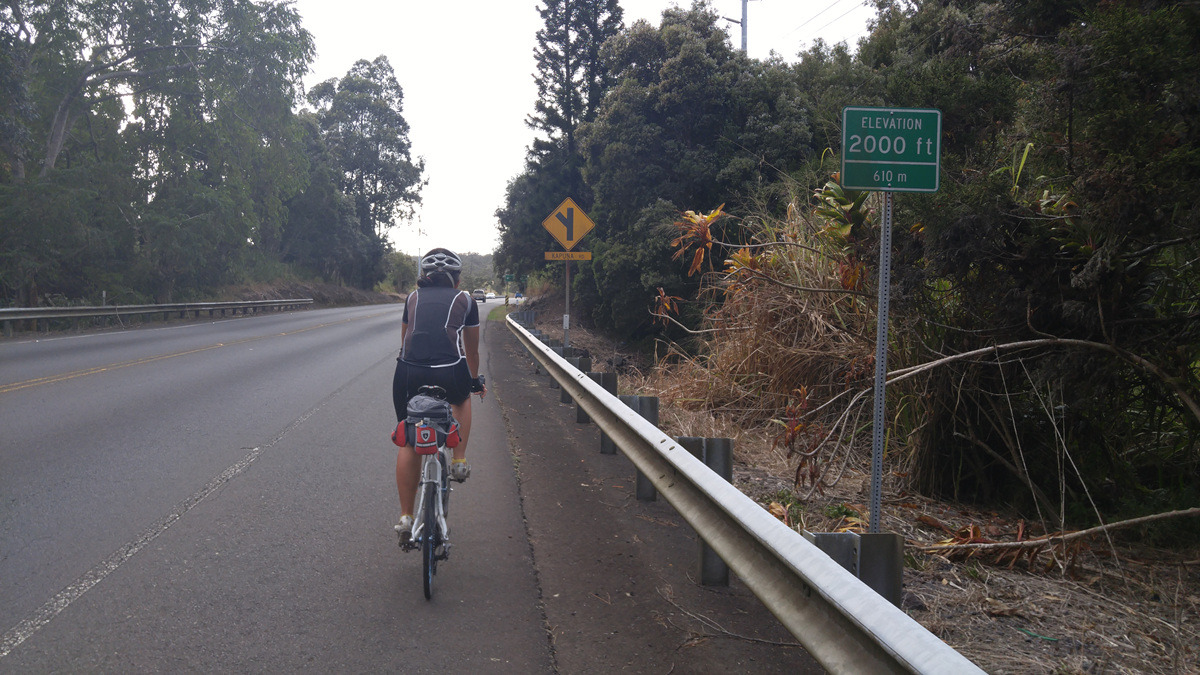 해발 300미터 정도 되는 호노카아 입구부터 출발해서 은근히 경사가 있는 오르막을 올라가니 금방 해발 610m (2000 피트)까지 올라간다.