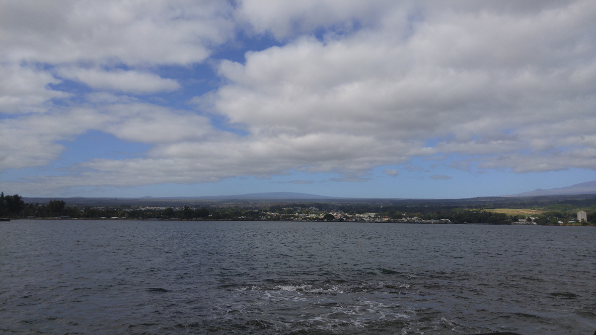 코코넛 아일랜드에서 본 힐로의 전경이다. 이래 뵈도 호놀룰루 다음가는 하와이주 제 2의 도시다. 저 멀리 높이 4200미터의 마우나케아 화산도 잘 보인다. 하와이는 공기가 워낙 맑기 때문에 멀리까지 시야가 확 트인다.