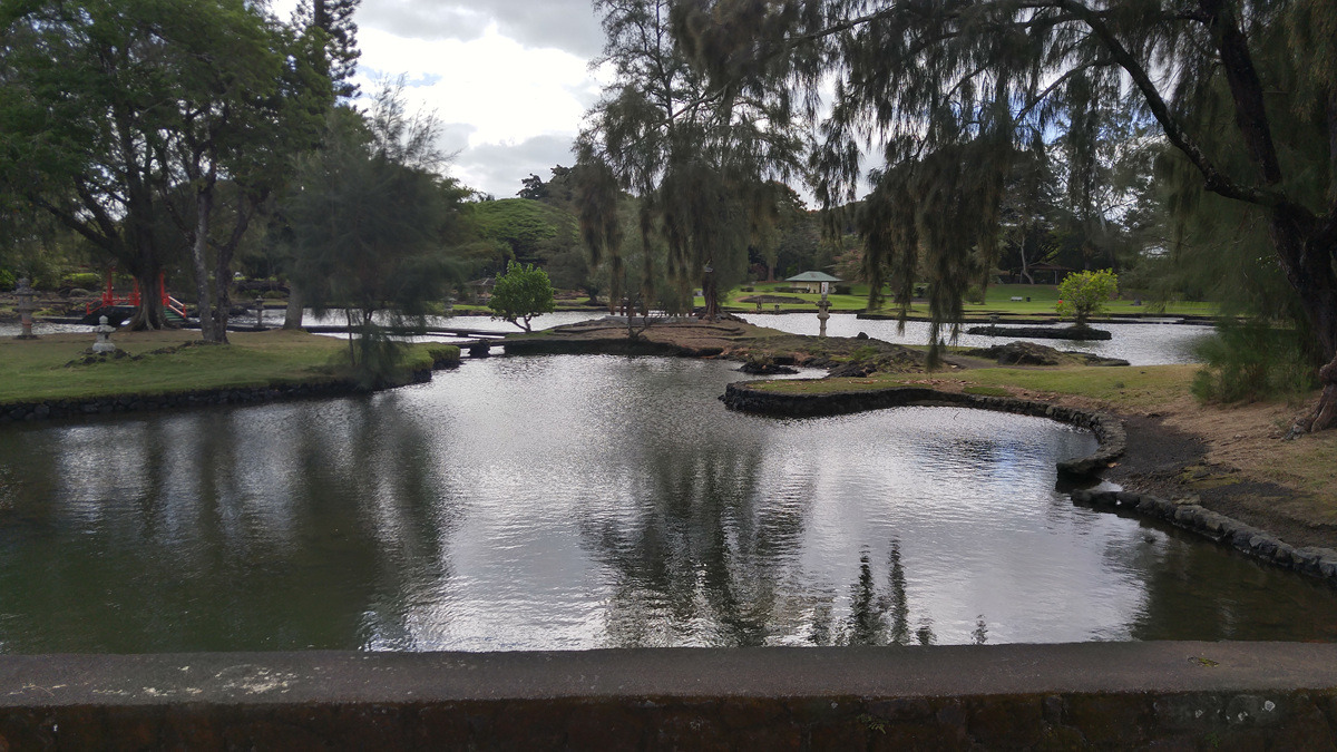오른쪽으로는 일본식 정원 느낌이 강하다는 퀸 릴리우오칼라니 정원(Queen Liliuokalani Garden)이 있다. 일본식 정원은 아기자기한데 일본식 정원이라기보단 공원이라 해야겠다.