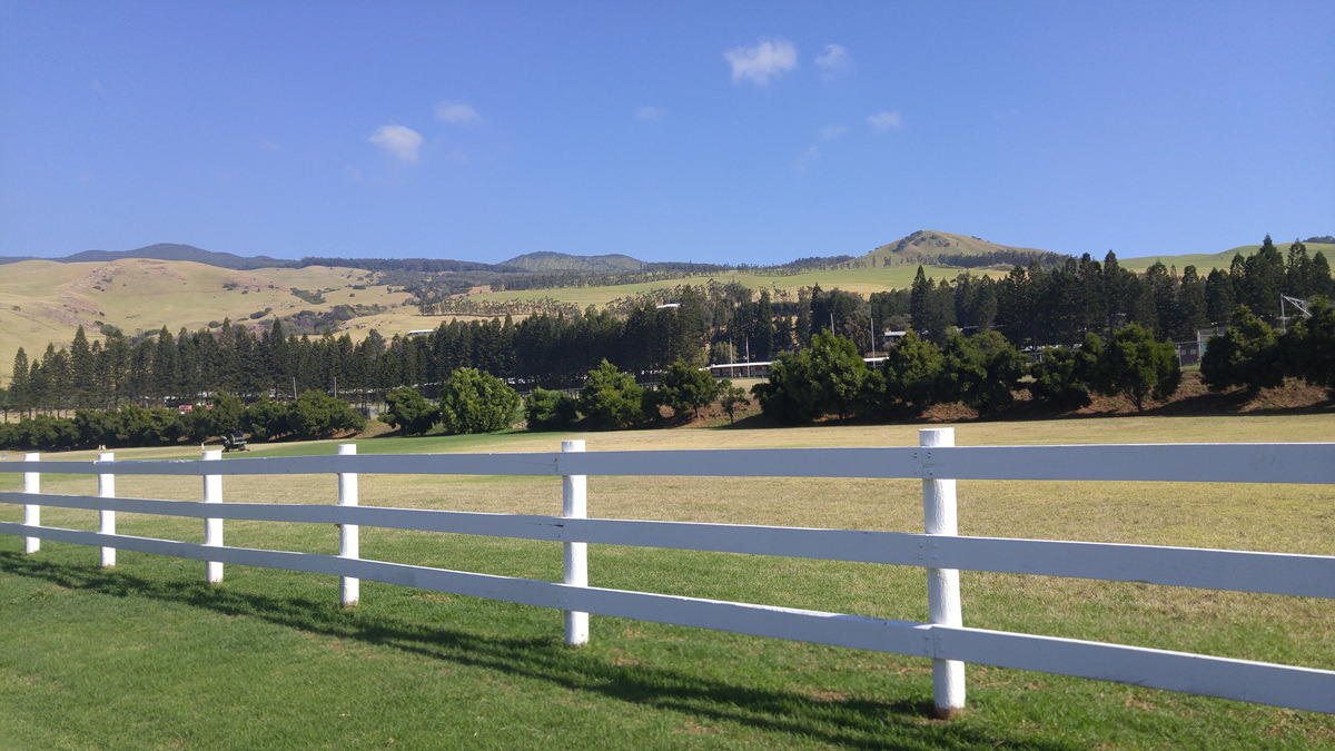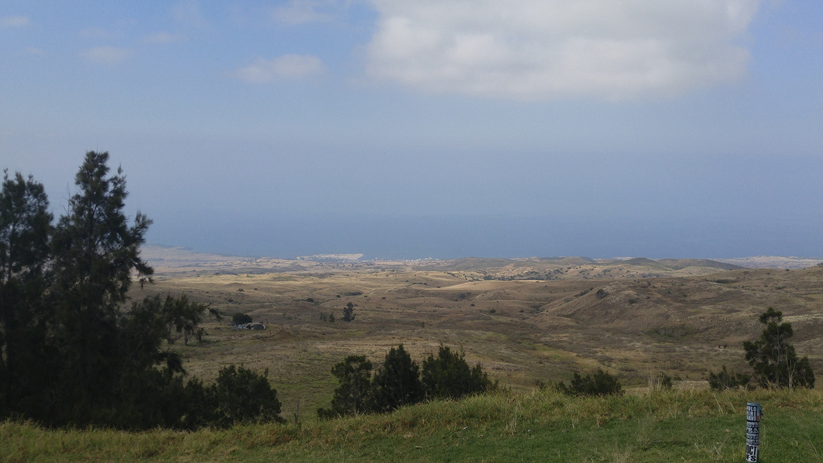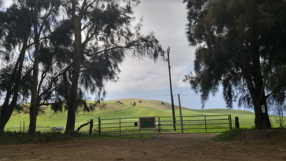 넓은 초지 뒤로는 1670m의 코할라 화산이 솟아있고, 그 뒤로는 와이피오 벨리와 폴롤루 벨리라는 엄청난 계곡이 있다. 여기서는 그냥 부드러운 능선의 산이지만 저 너머는 깎아지른 절벽이라니 눈으로 보지 않고는 못 믿겠다.