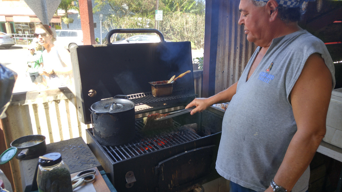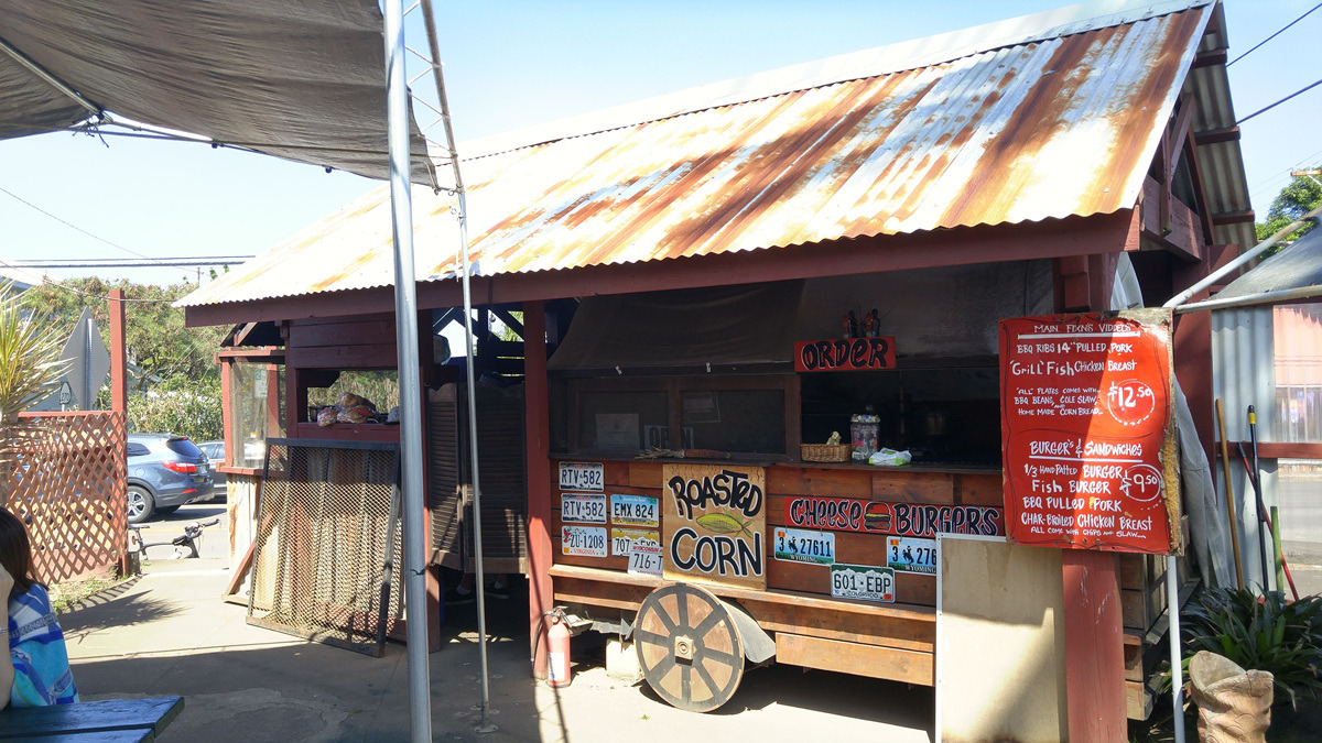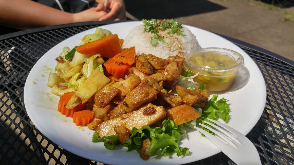 너무 웰빙으로 먹었더니 배가 덜 찼다. 와이메아의 숙소 아주머니가 추천해준 바베큐 척 웨건을 찾아서 좀 더 먹기로 한다. 타이음식 같아 보이는 치킨 플레이트를 주문한다.