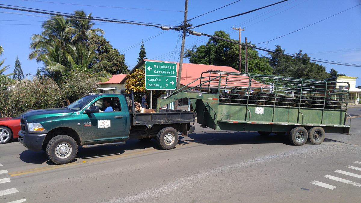 반얀트리에서 조금 밑에는 하위의 중심지라 할 수 있는 상점가가 있다. 마침 파커 목장의 소들을 실은 트럭이 지나간다. 짐칸에서 신나 있는 양치기 개들이 귀엽다.