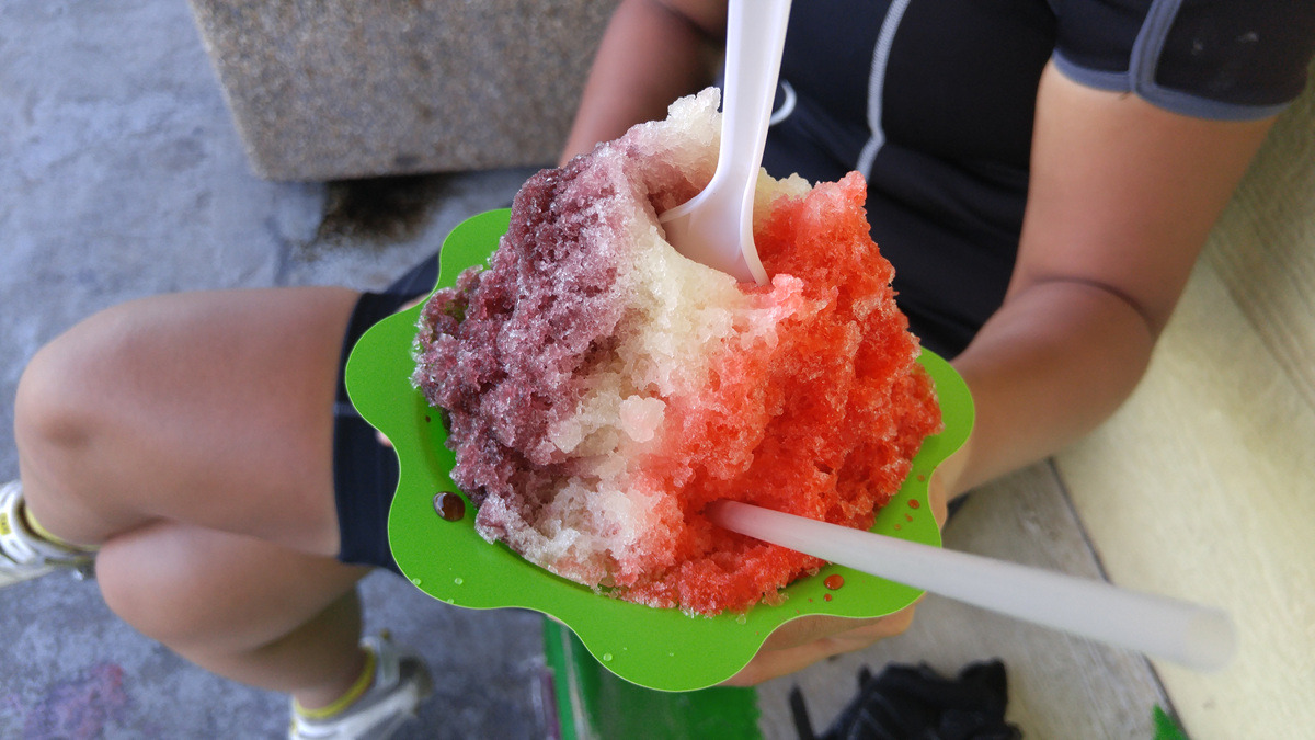 우리나라 같은 팥빙수가 아니라 보슬보슬한 얼음에 색소만 뿌려주는 빙수다. 색소 종류가 다양하다.