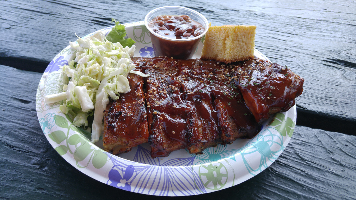 그런데... 타이 음식 노점은 바베큐 척 웨건의 옆집이었다. 까짓거 또 먹으면 되지. 진짜 바베큐 척 웨건에 들어가서 바베큐 폭립을 주문한다.