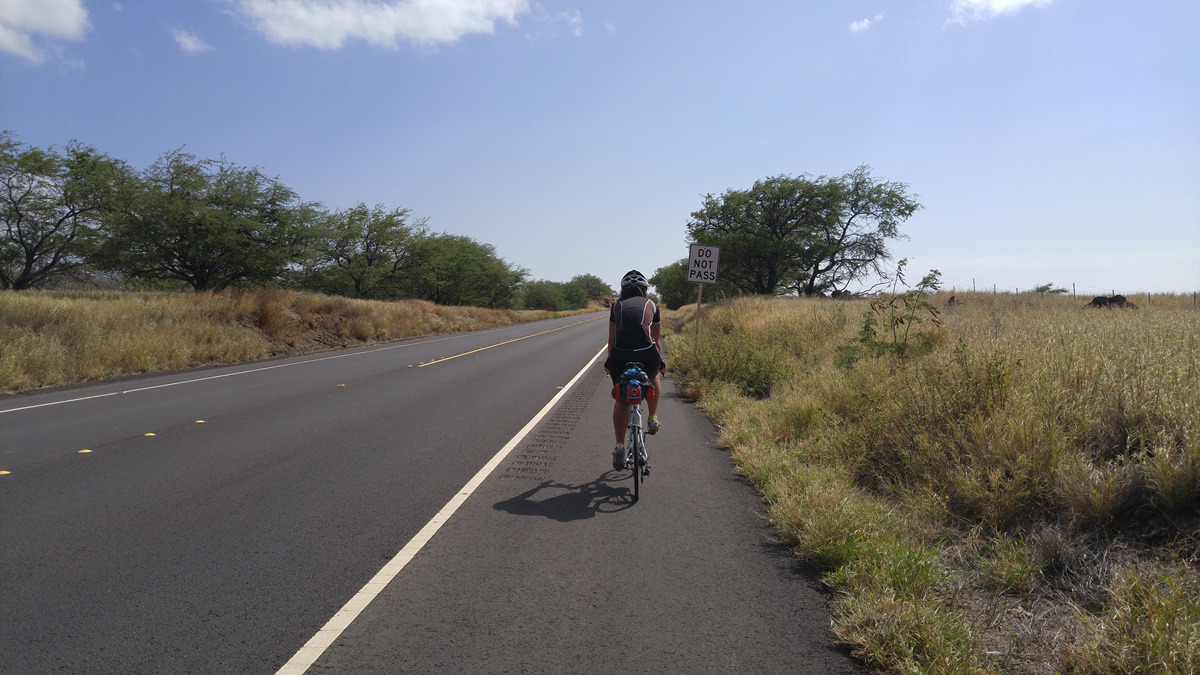 잘 먹고 잘 자긴 했는데 오늘은 와이메아에서 코할라 산허리를 돌아서 최북단의 마을인 하위(Hawi)를 지나 다시 처음 출발했던 코나(Kailua-Kona)까지 달려야 한다. 만만찮은 언덕까지 있는 130km의 강행군이다. 중간에 적당한 곳에서 쉴까 하다가 쉬는 것도 애매해서 그냥 달려보자고 한 것이다.