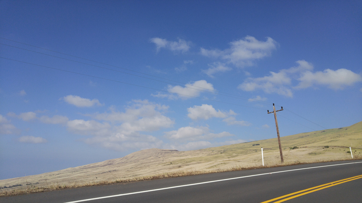 하위부터 카와이하에까지는 사람 사는 곳이 거의 없는 벌판이다. 바다 옆으로 펼쳐진 벌판이라 지금까지와는 또 다른 풍경이다.이렇게 지역마다 풍경이 다르니 하와이의 풍경은 질리지 않는다.